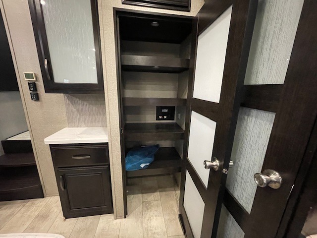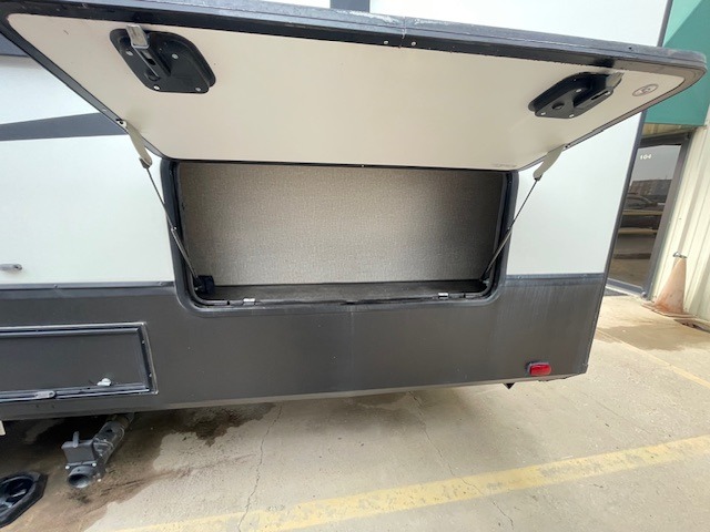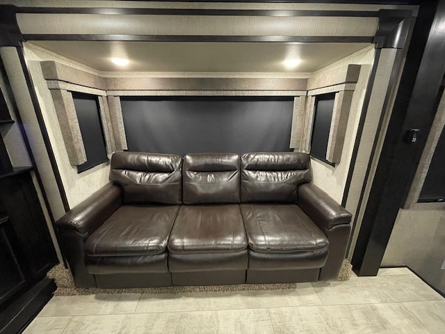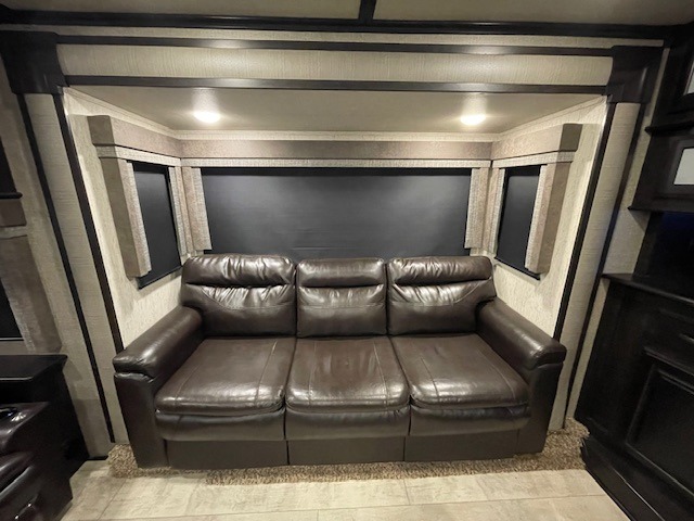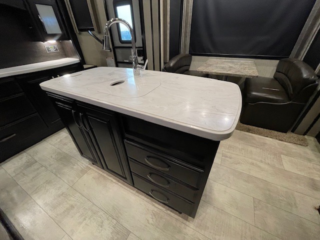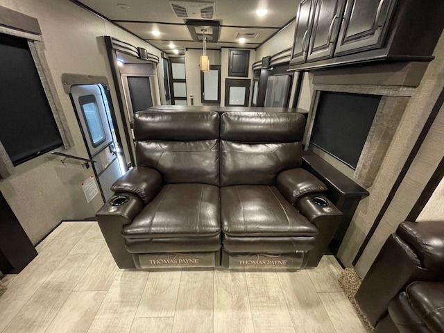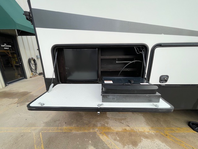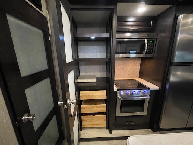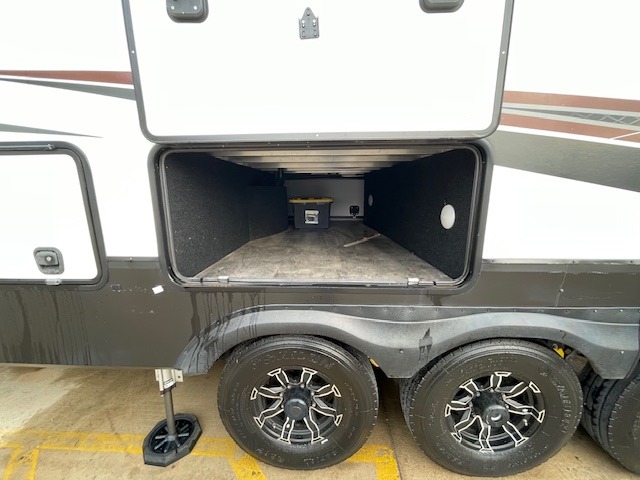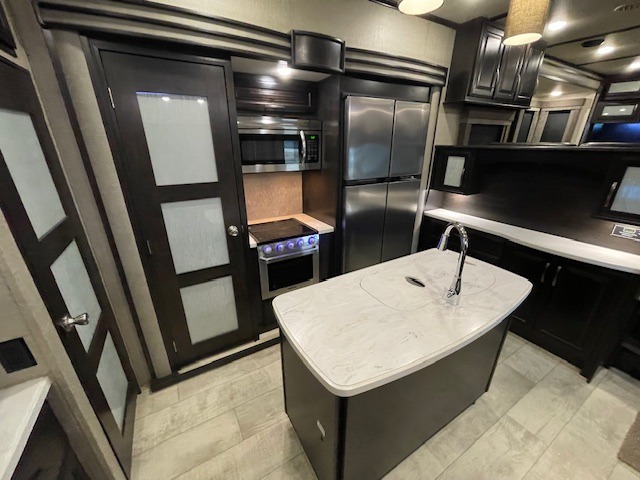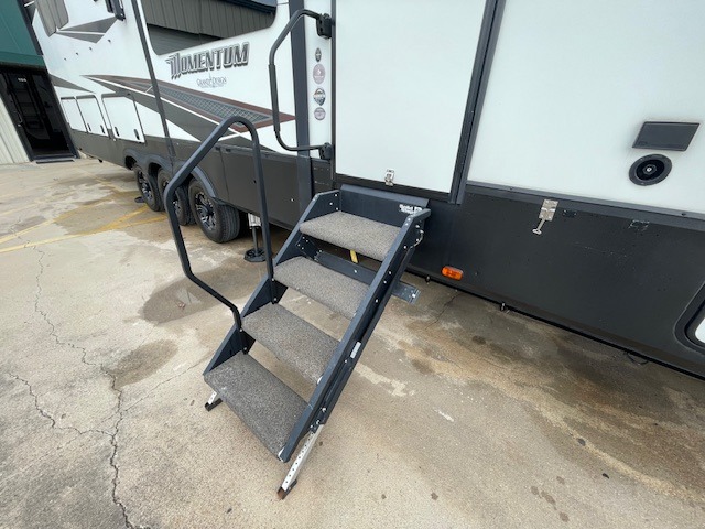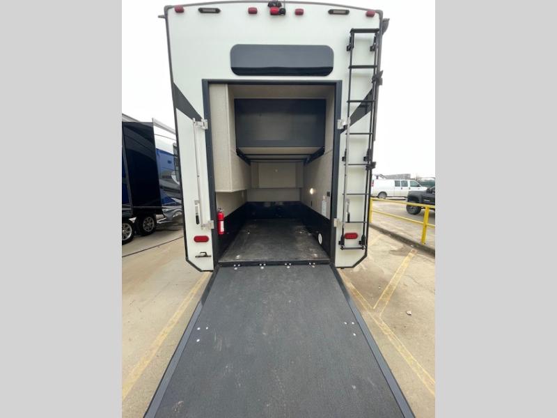 When you are ready for some off-road fun, hitch up this toy hauler fifth wheel to head to your favorite trails! This Momentum 376TH has a unique below floor garage with a bedroom above. After a busy day on the dunes, you can entertain guests in the front living area which includes a telescoping 49" LED TV with fireplace. You will find the separate kitchen area has all the amenities necessary to make and eat meals including a free standing dinette and large pantry. You can even add a washer and dryer in the second pantry if you want to keep your clothes clean the whole trip. You may choose to cook outdoors on the outside kitchen while watching the exterior LED TV. There is much more to see inside and outside this toy hauler!