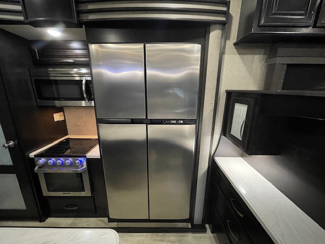 With any Momentum toy hauler fifth wheel you will enjoy extraordinary living with extreme playtime with the Weather-Tek insulation for four seasons of protection, and a fully enclosed fuel pump station to keep the fun going the whole time. The Tuff-Ply garage flooring is gas and oil resistant and includes 2,500 lb. rated flush-mount tie-downs to keep your toys secure while moving down the road. The interior includes a sofa with headrest and removable swivel table, a convection microwave, a central vacuum system with tools and a dust pan, and a satellite/solar roof access channel, to mention a few highlights. Any Grand Design Momentum allows you to keep your active lifestyle no matter where you decide to stay!