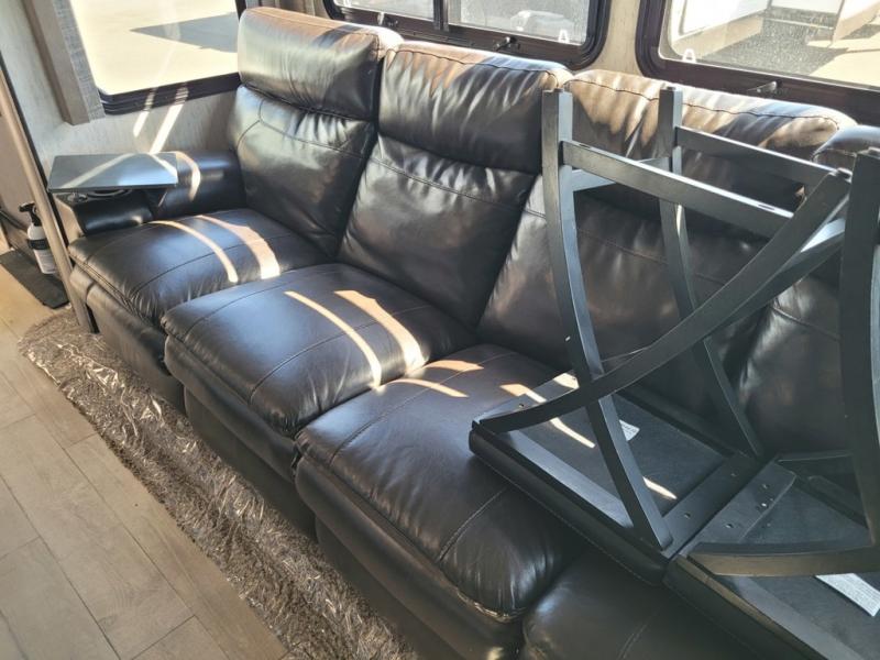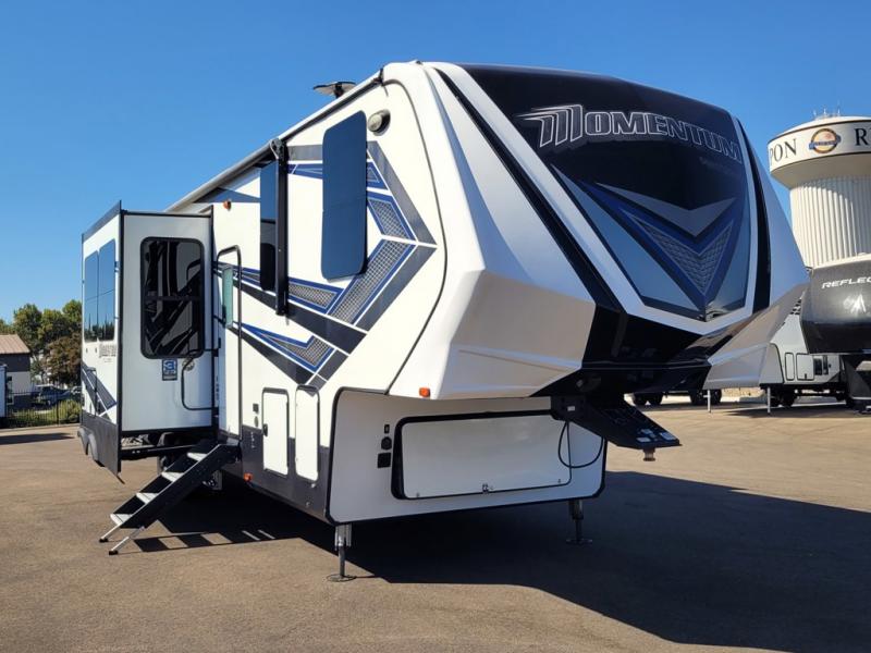 With any Momentum M-Class toy hauler fifth wheel you will enjoy extraordinary living with extreme playtime with the Weather-Tek insulation for four seasons of protection, and a fully enclosed fuel pump station to keep the fun going the whole time. The Tuff-Ply garage flooring is gas and oil resistant, plus triple insulated. You will find 2,500 lb. rated flush-mount tie-downs to keep your toys secure while moving down the road. The interior includes a sofa with headrest and removable swivel table, a convection microwave, a central vacuum system with tools and a dust pan, and a satellite/solar roof access channel to mention a few highlights. Any Grand Design Momentum M-Class allows you to keep your active lifestyle no matter where you decide to stay!