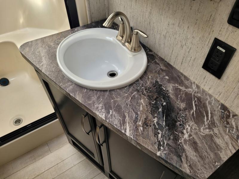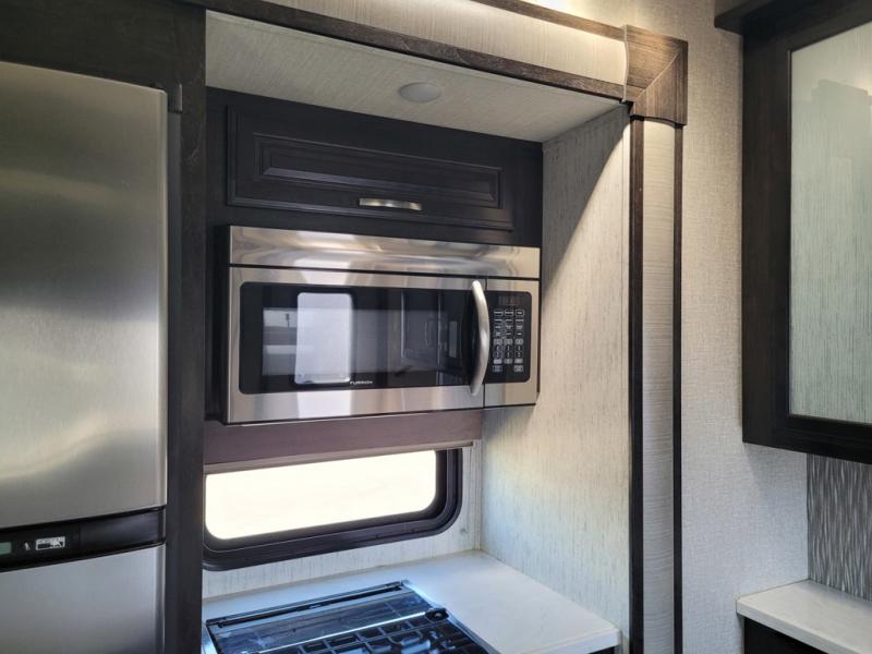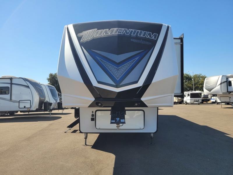 When the outdoors is all you think about, and you are looking for a weekend thrill, choose this Momentum M-Class 351M toy hauler fifth wheel by Grand Design. You will find plenty of space for a few off-road toys as well as there is plenty of comfortable living space throughout. The garage features 11' of space for an ATV or dirt bikes, plus includes a half bath. There are also plenty of windows providing natural lighting in each area. The kids are sure to enjoy eating at the kitchen island on the bar stools, or watching the 49" LED TV above the fireplace. There are many more standard features to see!