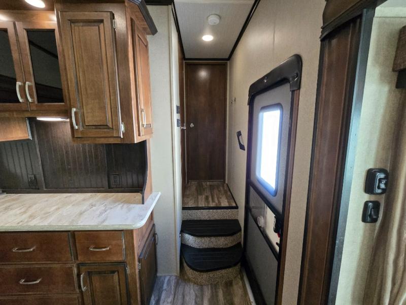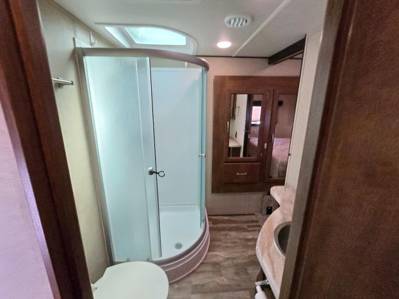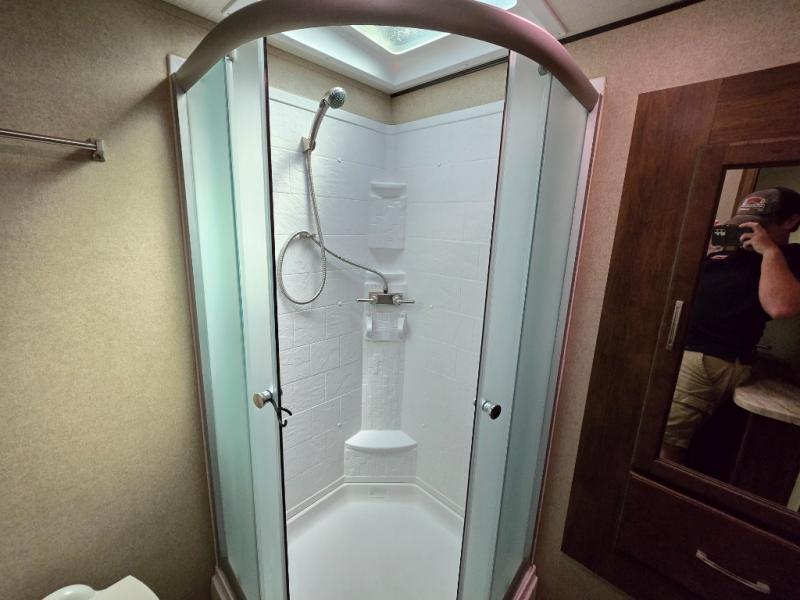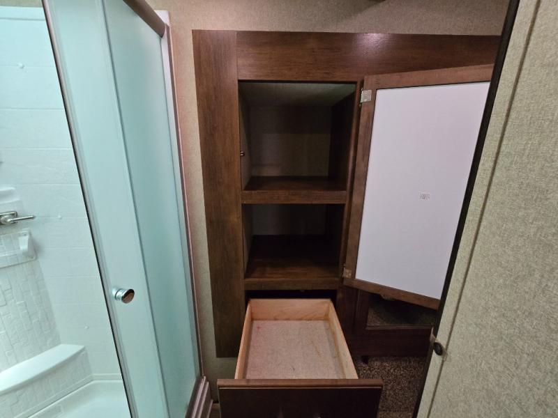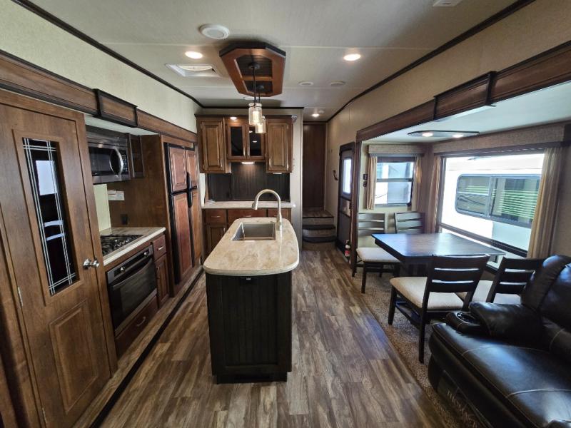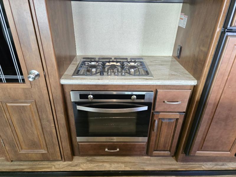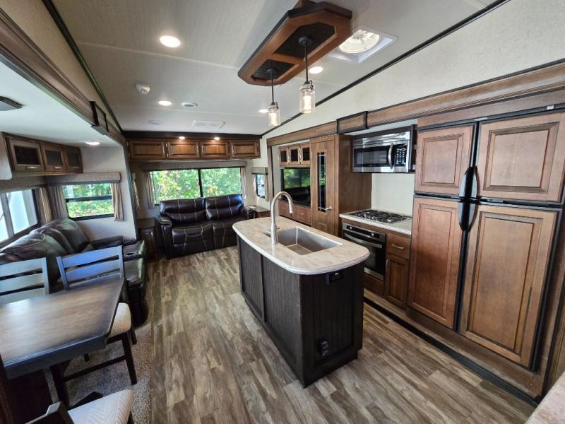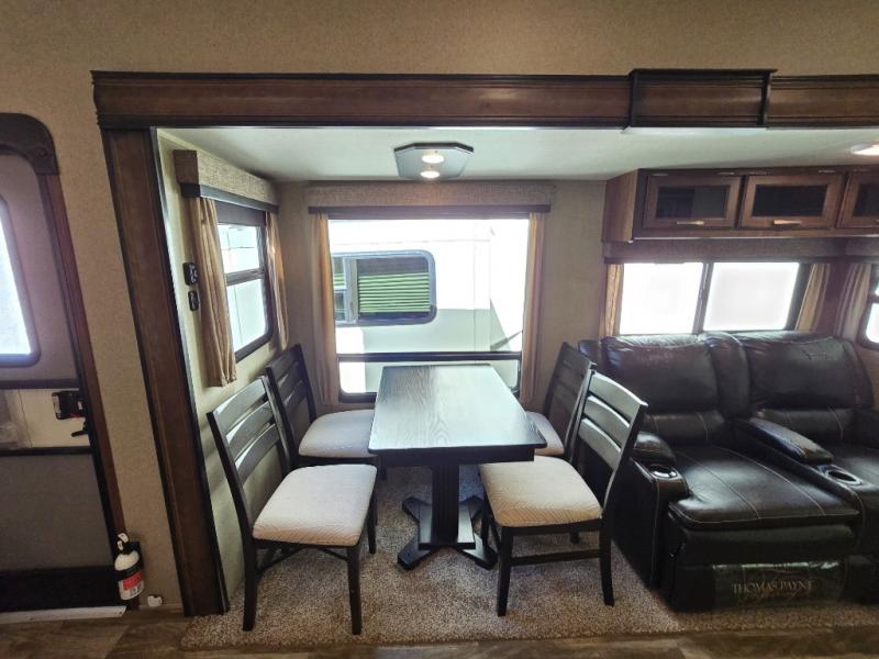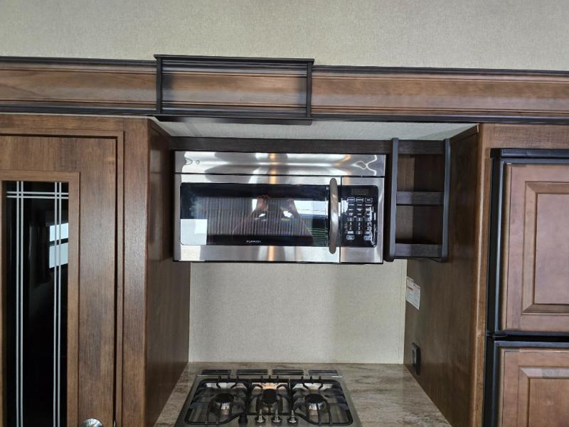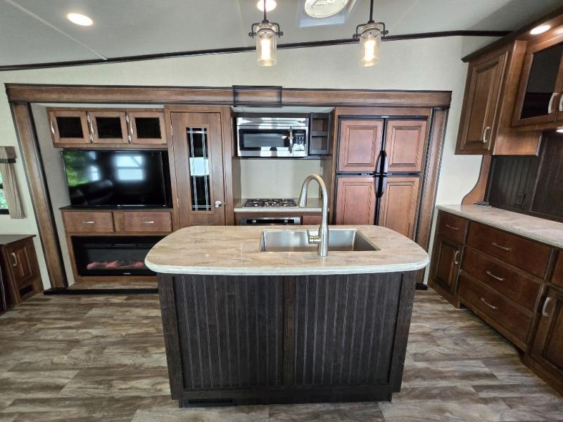 This Reflection 303RLS fifth wheel allows you to enjoy the comforts of home while moving from place to place with your spouse or smaller family. If you can imagine sitting in the rear living area on a tri-fold sofa bed after making dinner and serving the food from the kitchen island, this model is for you. You are sure to love the farm sink also. Even if you enjoy being outside most of the time, the weather might have you coming inside to watch the 40" TV or cozy up to the fireplace. Don't forget about storing your camp chairs and golf clubs in the unobstructed pass-through compartment if you need a dry place for those items. This model has many more standard features to enjoy and options to choose from, come see today!