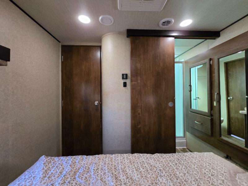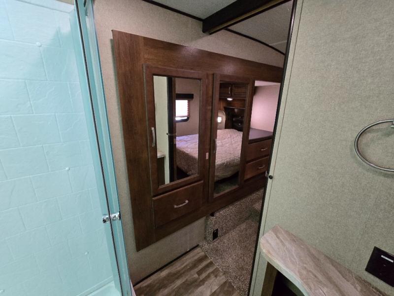 The Reflection by Grand Design offers luxury along with providing easy towing with the aerodynamic front cap with Max Turn radius to your favorite destinations. The Universal All-In-One docking station, LP Quick Connect, and One-Touch electric awning with LED light make setting up and packing up easy for those weekenders or full-timers that like to move around. Inside you will find the bedroom is complete with a pillowtop queen mattress, king size wardrobe, oversized underbed storage, and much more! The Arctic 4-Seasons Protection package allows you to camp anywhere and anytime of the year. Come choose your favorite model today!