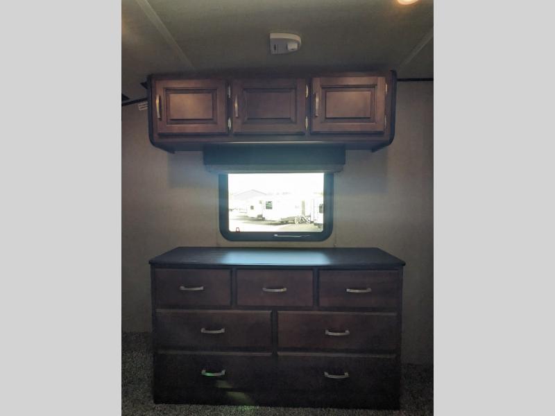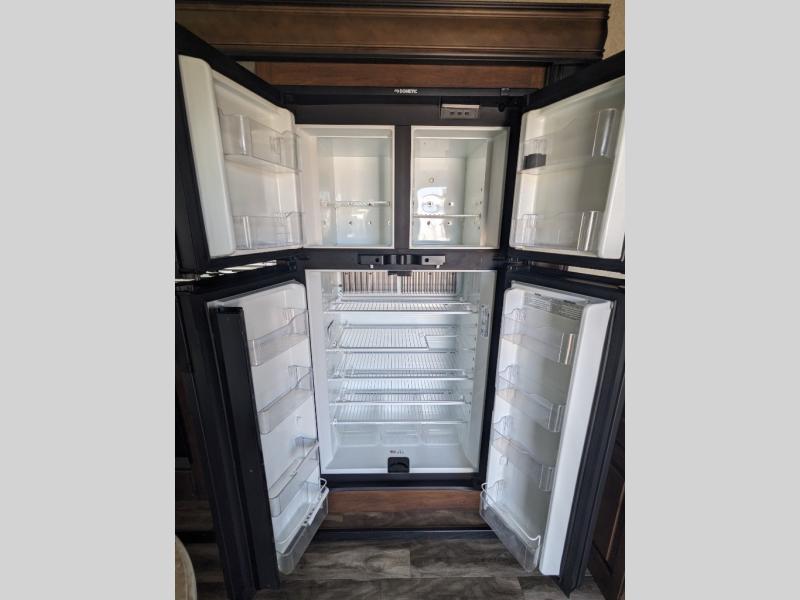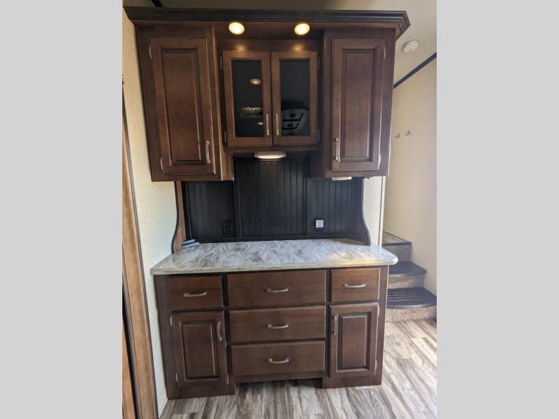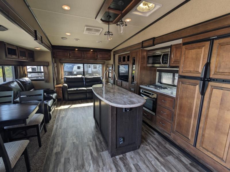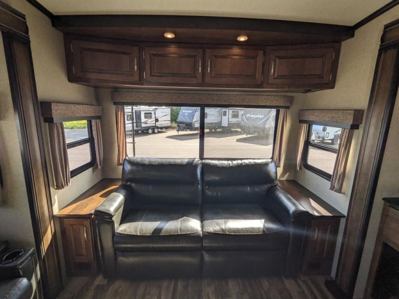 This Reflection 337RLS fifth wheel allows you to enjoy the comforts of home while away exploring the world with your favorite person. You can even invite over a few overnight guests. Just imagine sitting in the rear living area on the furniture provided while visiting with the cook preparing meals at the kitchen island or washing dishes in the farm sink. You might even glance over at the 40" TV and fireplace ever once in a while. You will find storage everywhere you look inside including outside in the unobstructed pass-through compartment. This model has many more standard features to enjoy and options to choose from to make this your perfect full-time or weekend retreat on wheels.