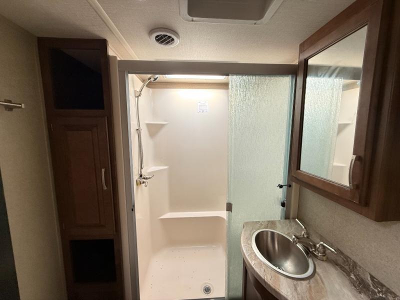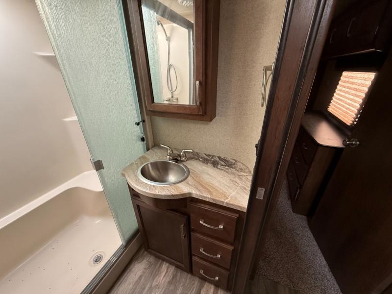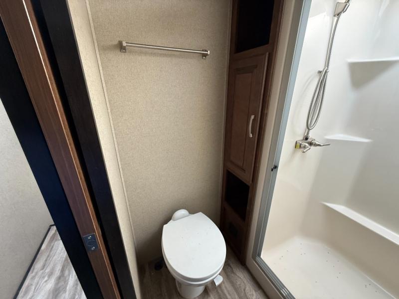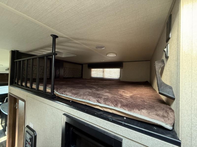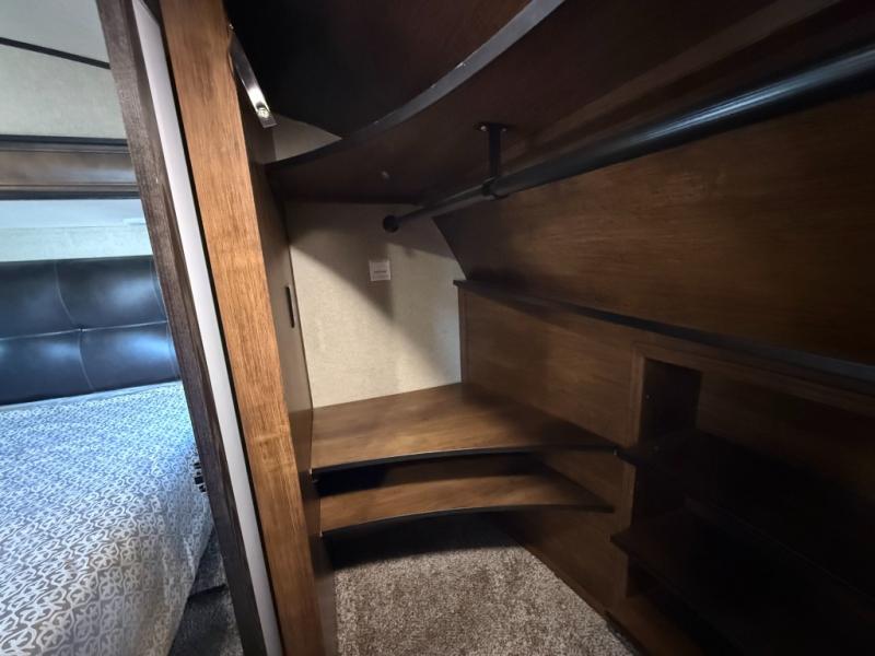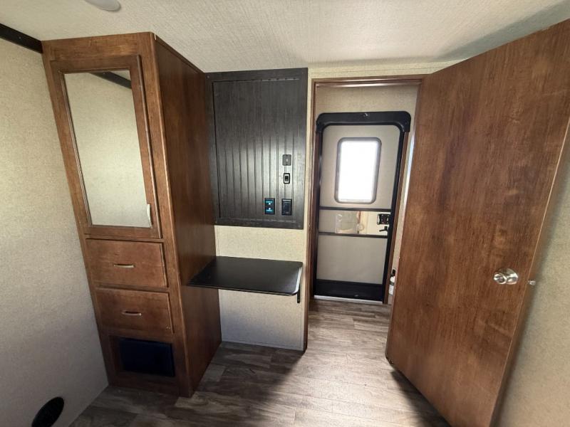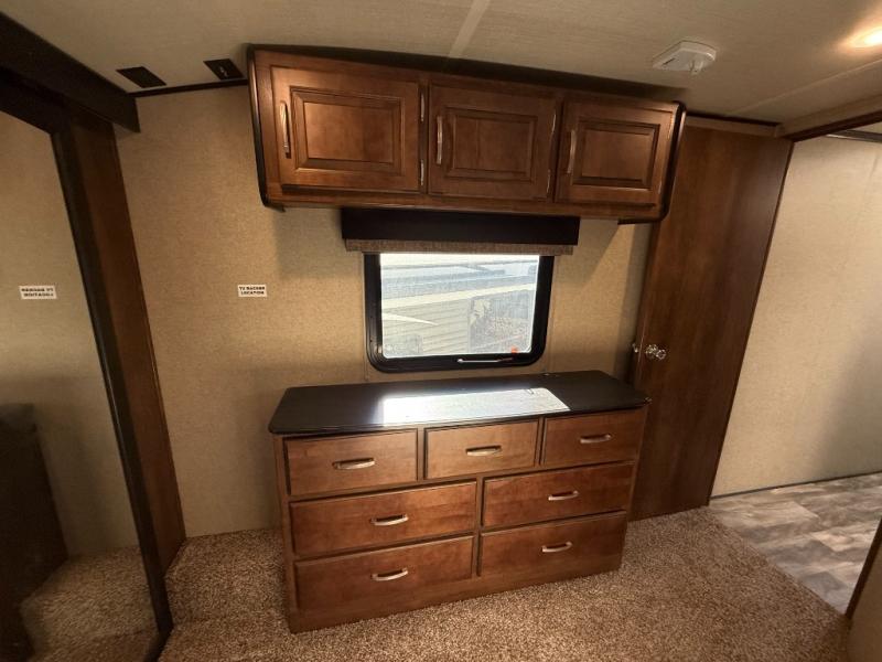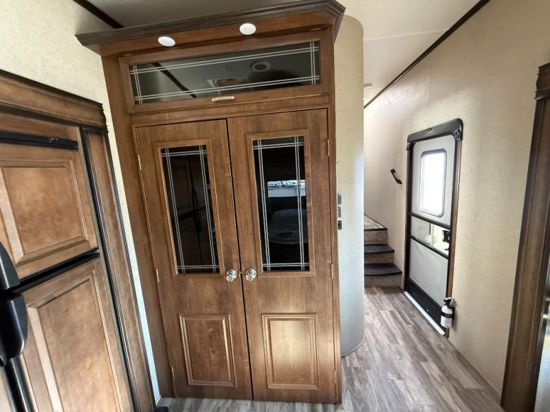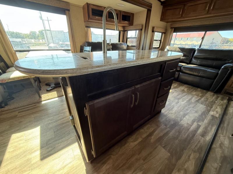 Have you been searching for a fifth wheel that offers a master suite plus an extra room to be used as an office, second living area or even a bedroom? Then start imagining how you will use all of the space in this Reflection 367BHS. The centrally located extra room includes a sofa and a desk, plus a loft above for more sleeping space. The main living area and kitchen offer plenty of seating, a large pantry, and all the appliances to make your favorite meals. There is even extra sleeping space on the tri-fold sofa next to the 40" TV and fireplace. You will be able to entertain as well as relax in this area or in the extra room. The exterior unobstructed pass-through compartment allows for more outdoor gear to be packed, and the two awnings provide extra protection from the elements. Your search is over, this is the model for you!
