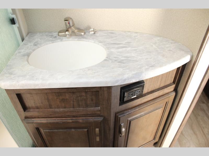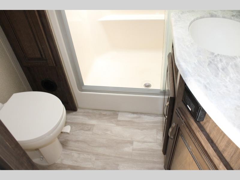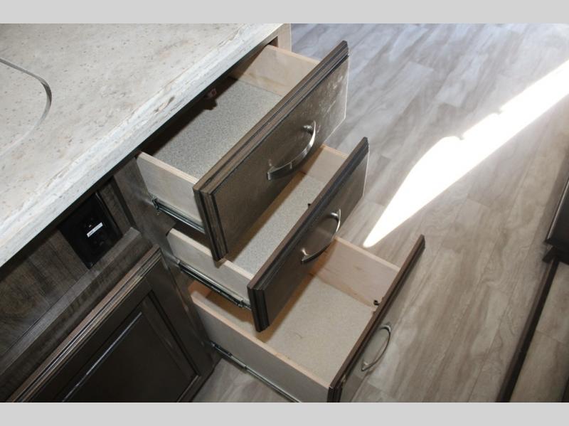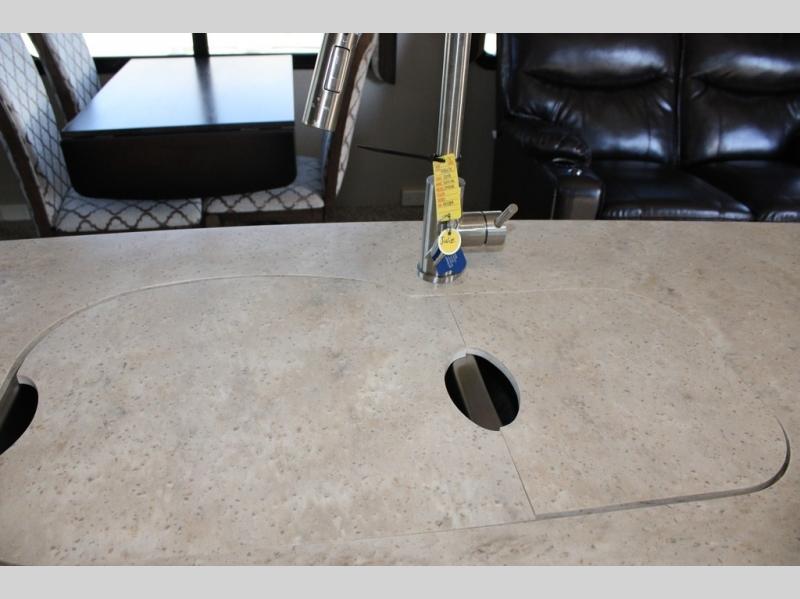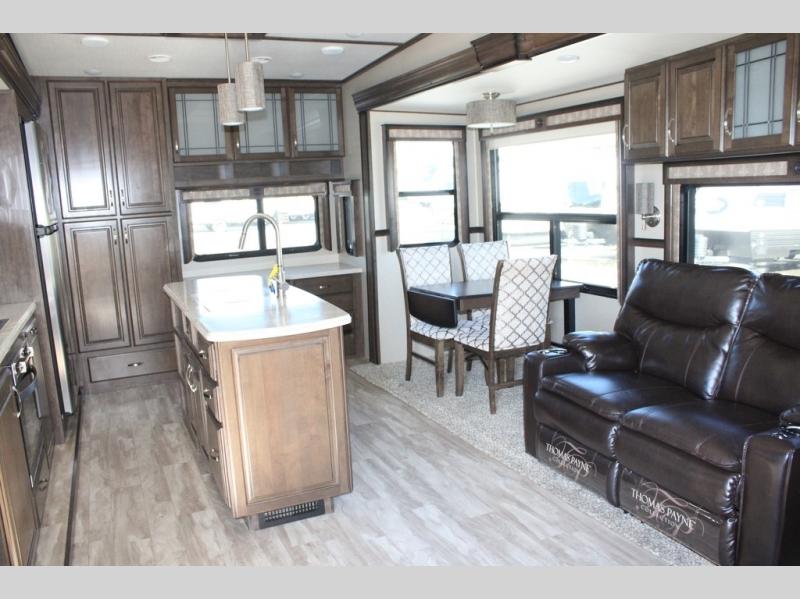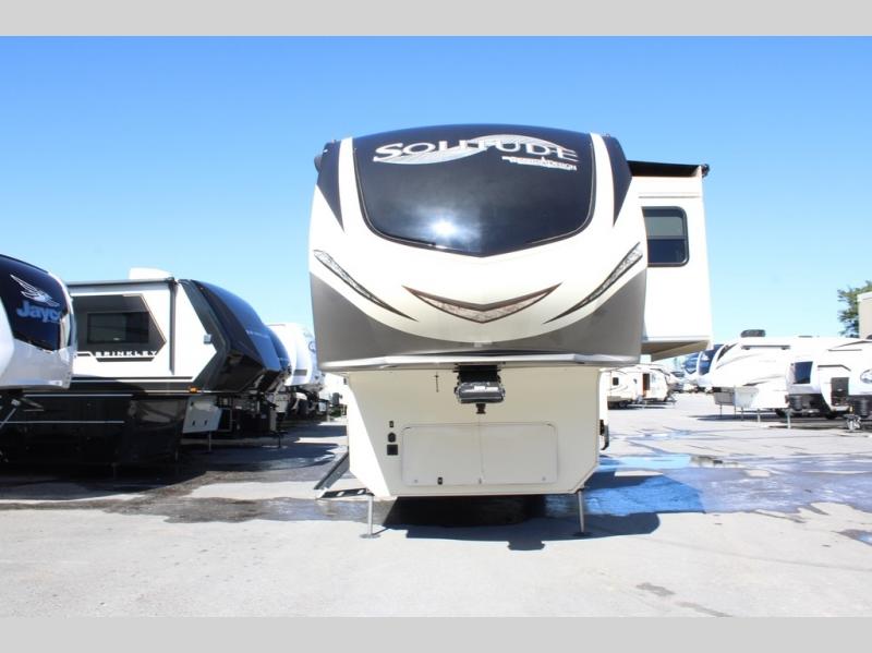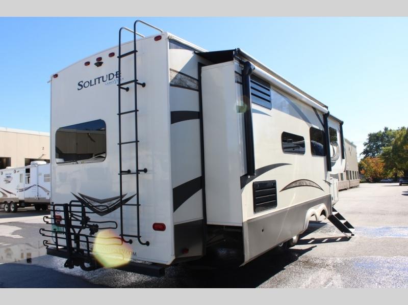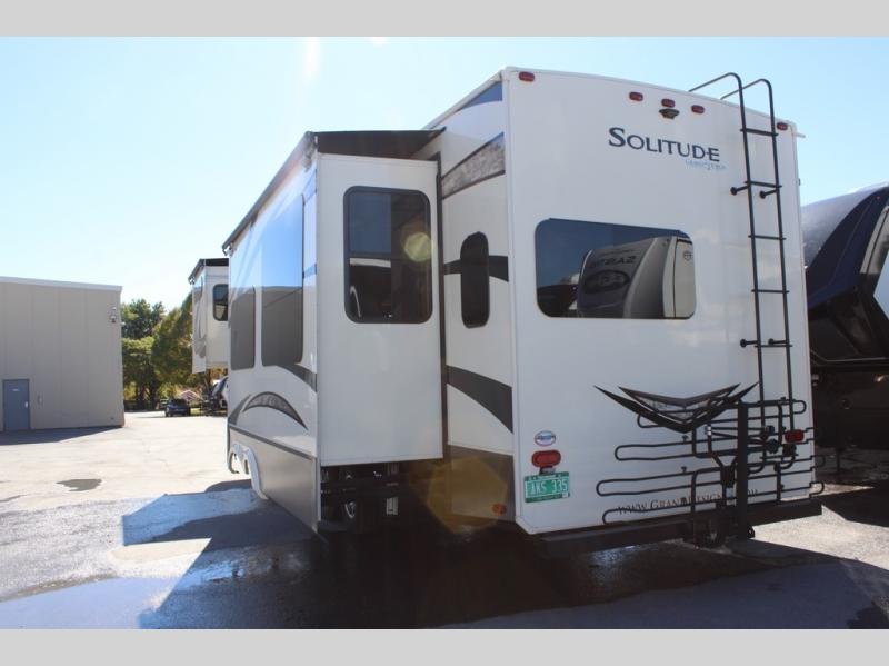 With each Solitude fifth wheel by Grand Design you will receive affordable luxury for your extended stays or weekend get-a-ways. From the solid foundation including a Equa-Flex suspension to the taller ceilings, taller and deeper cabinets, the power reclining theatre seating with swivel table including a heat and massage function, a pet dish drawer, a Stealth AC system, and the Weather-Tek package which allows you to travel any season you choose. It's time to enjoy luxury living where ever you decide to land.