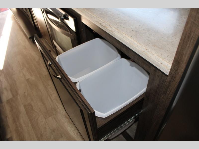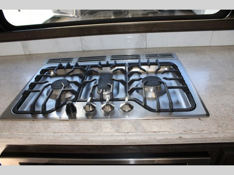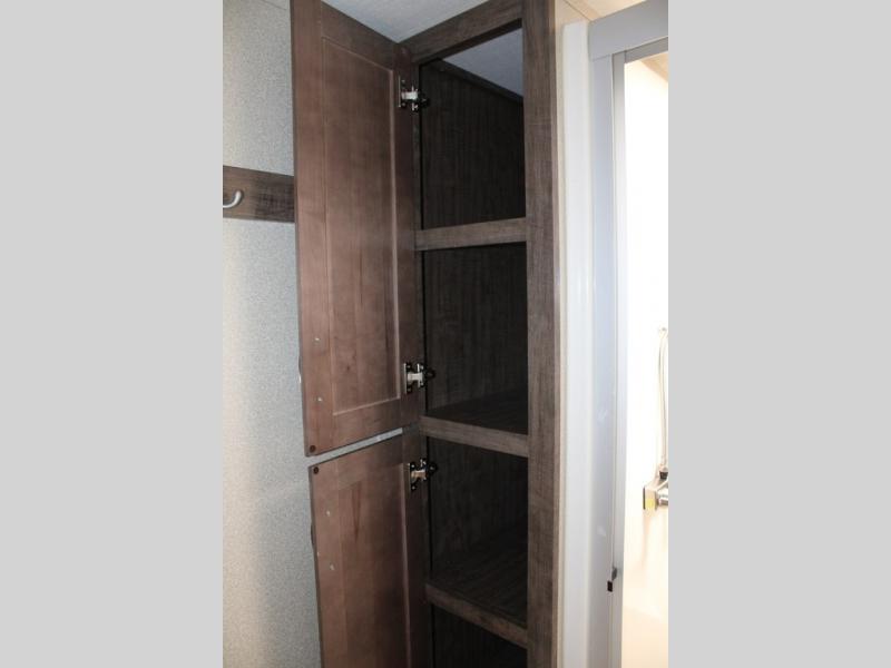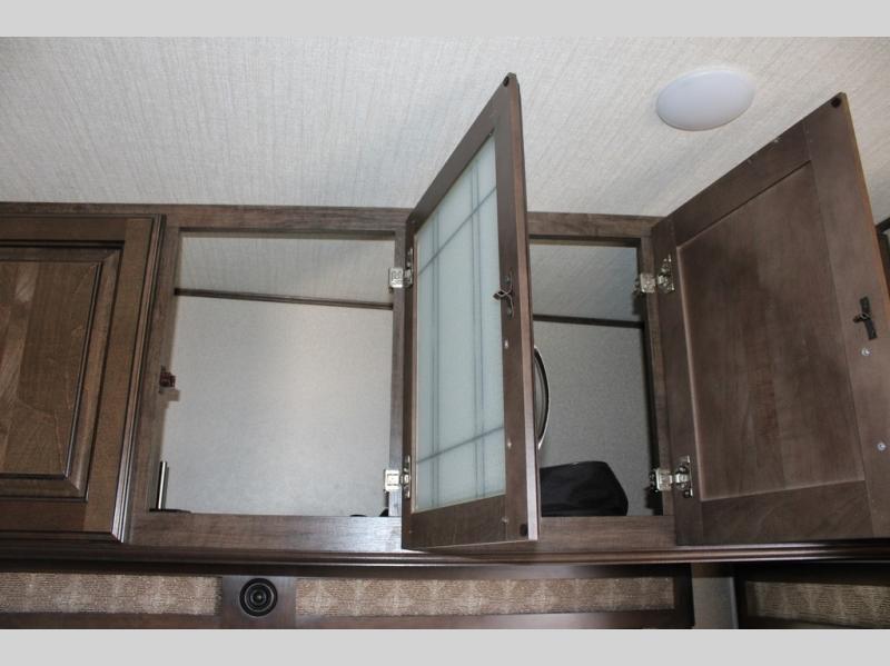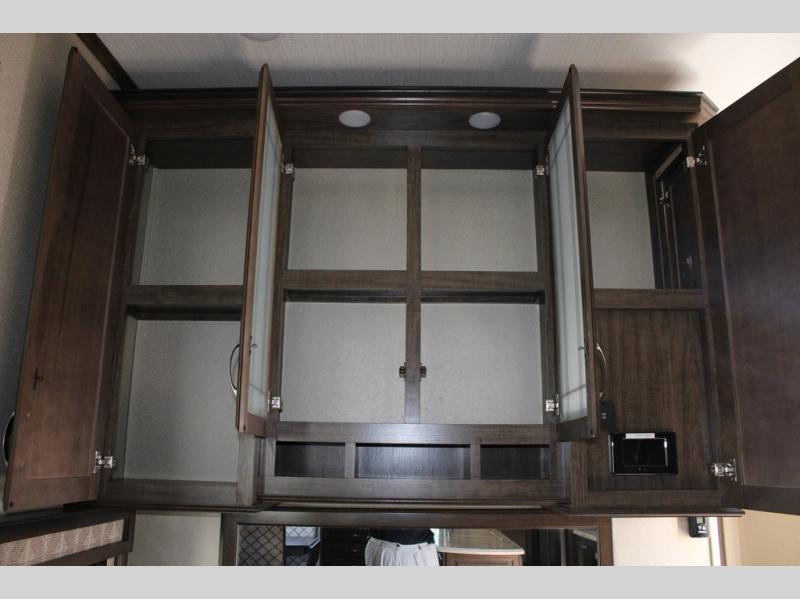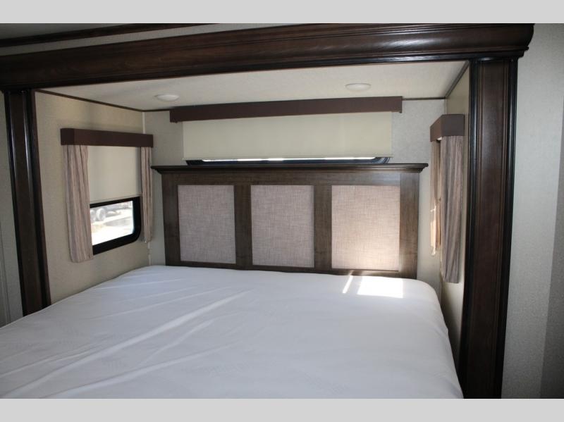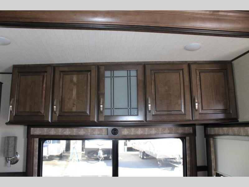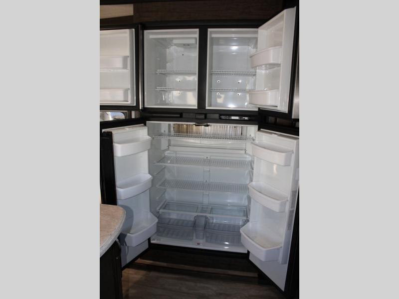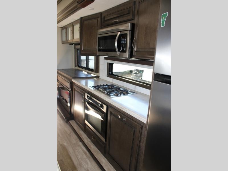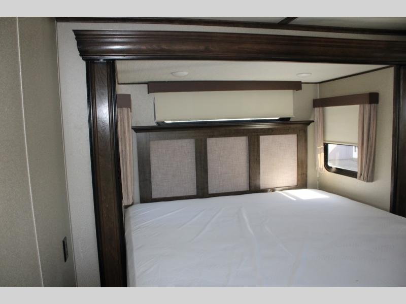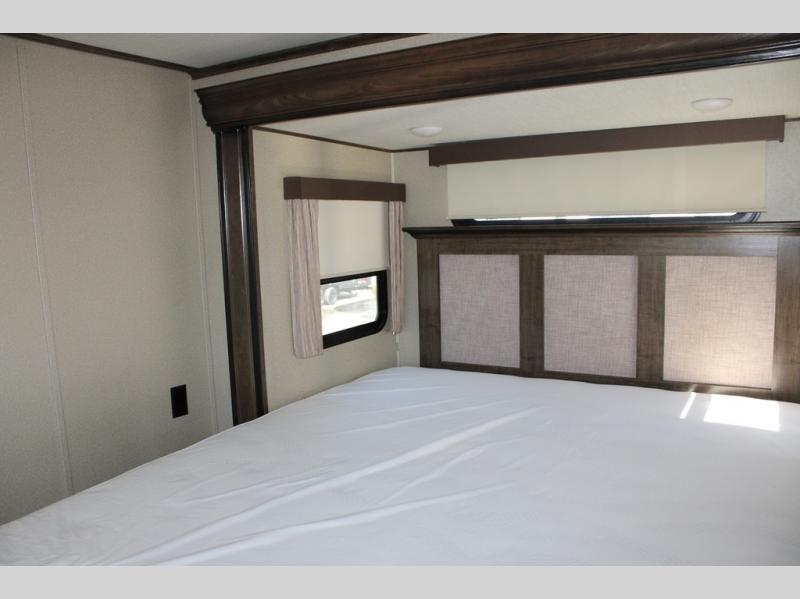 Just imagine working at your own desk while looking out the window at the mountains or the lake in this Solitude 344GK fifth wheel. Now you can start thinking about how you will enjoy a front master bedroom with a flip-top dresser, pullout ottoman, and TV. When you aren't exploring outside, you might decide to cook your meals using the professional grade stainless steel cooktop, built-in oven or convection microwave. There is serving space on the kitchen island, and you can store leftovers in the pantry or in the stainless steel 18 cu. ft. four door refrigerator. You will find plenty of storage throughout including for your shoes, dry goods, linens, and your wardrobe. You might even like to choose a few options such as adding a washer and dryer, a dishwasher, a king size bed, or even a pull-out kitchen outside. Come see how this Solitude allows you to work and play at any destination.