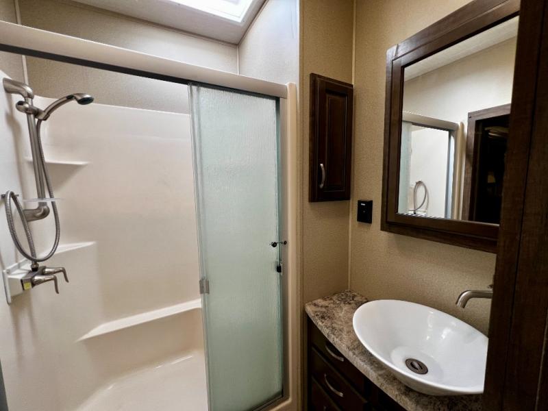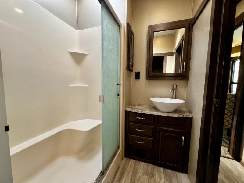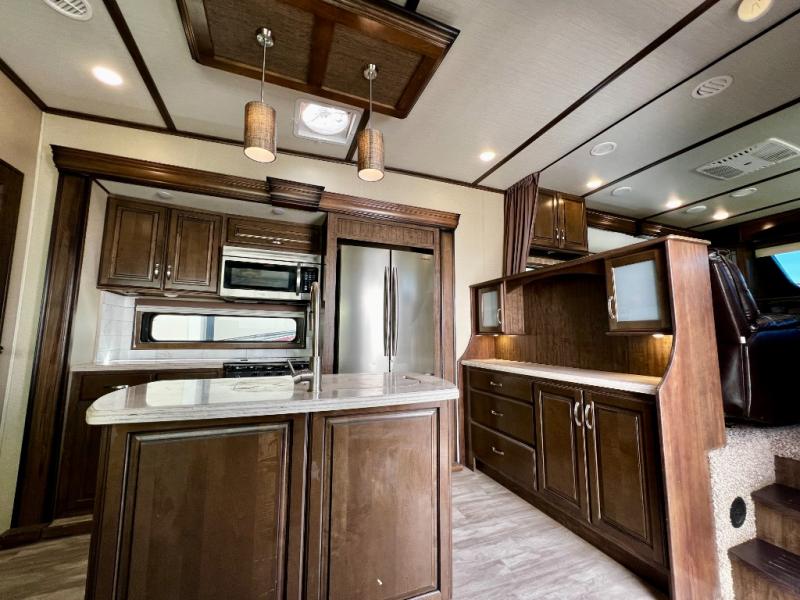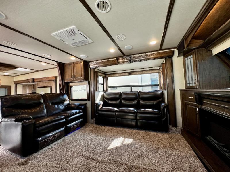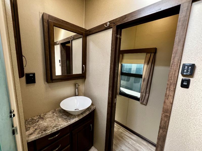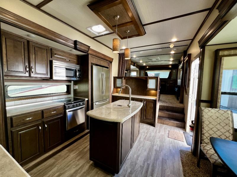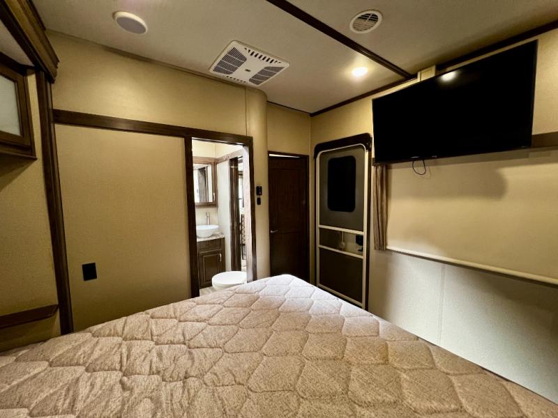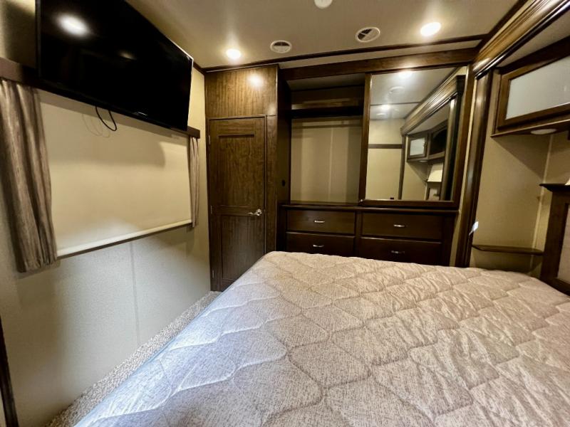 On the hunt for a full-time fifth wheel with all the comforts of home, plus some? This Solitude 379FLS R fifth wheel allows you to travel any season with plenty of floor space to move about, and storage almost everywhere you look, plus extra sleeping space for overnight guests. You will enjoy your own master bedroom with a pullout ottoman, a closet with drawers, a TV, and the second exterior entry door. If you like to make meals instead of eating fast food, the professional grade stainless steel cooktop, built-in oven and convection microwave will come in handy. You can stock up on food before heading out with the stainless steel 18 cu. ft. residential refrigerator and large pantry available to you. If you like, you may choose to add a washer and dryer to keep your clothes clean, and a king size bed for more sleeping surface.