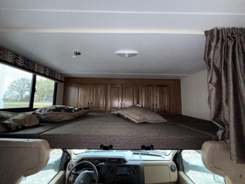 Set out to new destinations with this Conquest C 6320 class C motorhome by Gulf Stream RV. Your family will love having their own space while traveling. There are seatbelts for the rest of your family as you travel, keeping them safe. There is a walk through bath to the bedroom, giving mom and dad a bit of privacy at night. The kids and their friends have plenty of places to choose from when it comes to their sleeping arrangements. The bunk over the cab will be a hot spot for sure, but the jack knife sofa and the booth dinette fold down as well.