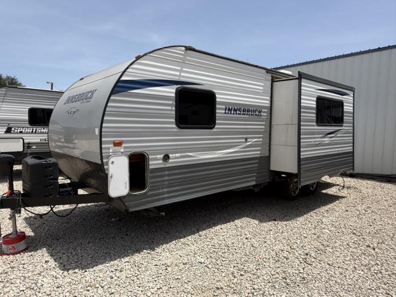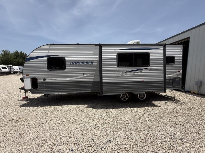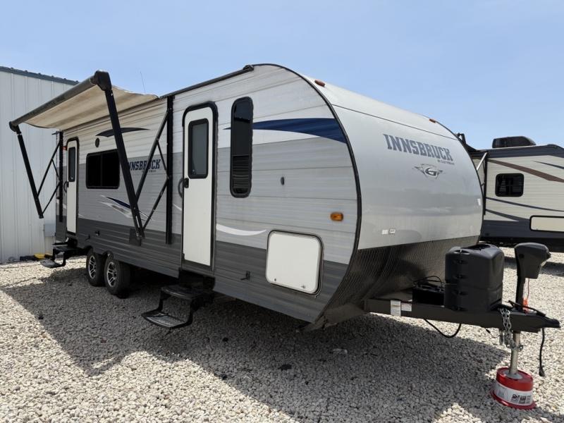2018 GULF STREAM INNSBRUCK SE ULTRA LITE 238RK has 1 SLIDE. Length 28FT. REAR KITCHEN, PRIVATE QUEN BED.. U-SHAPE DINETTE THAT CONVERTS INTO A SLEEPER FOR EXTRA GUEST. DINETTE/ SOFA SLEEPER, BATHROOM WITH FULL BATH. OUTDOOR GRILL WITH SINK. Lots Of Storage. 18’ Awning With LED Lighting. Sleeps 7. ENCLOSED UNDERBELLY PACKAGE.. COLD A/C. SUPER NICE TRAILER ONLY 4815 Lbs UVW. CAN BE PULLED WITH A SMALL SUV. 30AMP POWER. OUR PRICE $10,995. SEVERAL SUPER NICE RVS TO CHOOSE FROM. We are located in KENNEDALE TX. We show Rv's 7 Days A WEEK BY APPOINTMENT. Call BRET 817*805*0067 or AMY 817*658*4633 DELIVERY AVAILABLE TO ALL 48 STATES. WE INSPECT & GO THROUGH ALL TRAILERS TO ENSURE OUR CUSTOMERS ARE 100% SATISFIED.