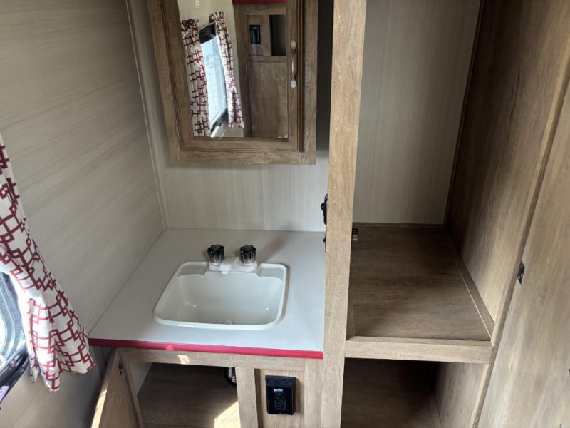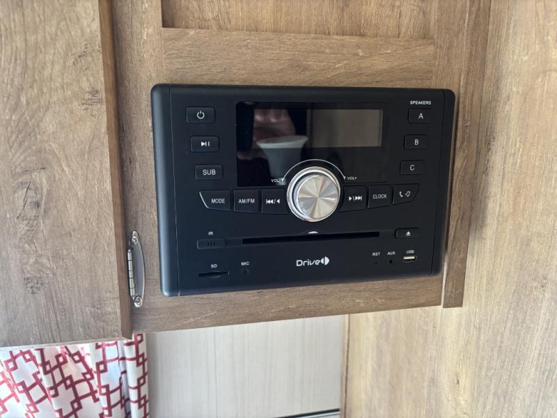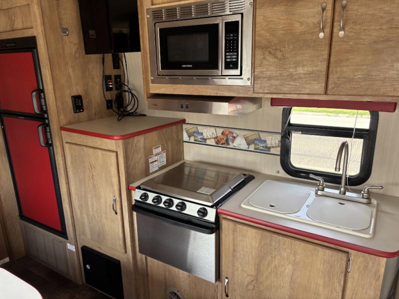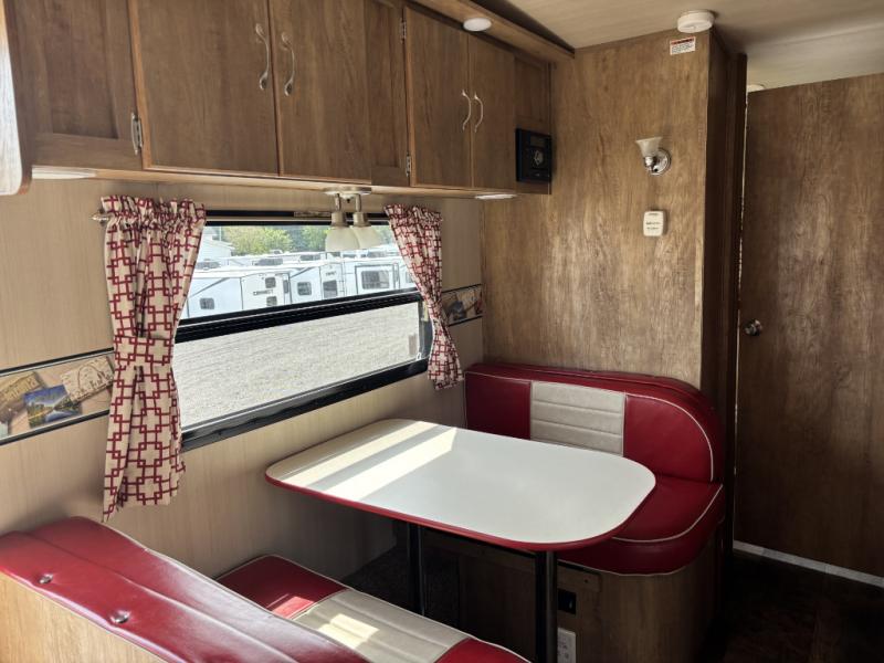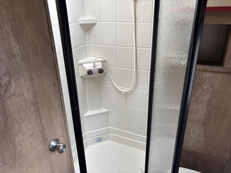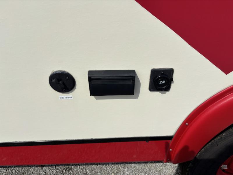 Everywhere you look in this Vintage Cruiser you will see the view you chose for your camp outing as there are windows in every space, even the bathroom. Between tons of natural lighting, and the LED lighting throughout, you will find the inside fresh and bright even on a cloudy day. Every morning you can wake to the sights and sounds of nature after a great night's sleep on the queen bed provided, then head to a spacious rear bath and get ready for your new day. The skylight above the shower will bring in more light to wake you along with the smells of breakfast being made just outside the door. There is a TV mount opposite the dinette if you choose to add an HDTV for enjoyment, plus you will also find multiple USB locations both inside and out handy for keeping all of your electronics charged as well.