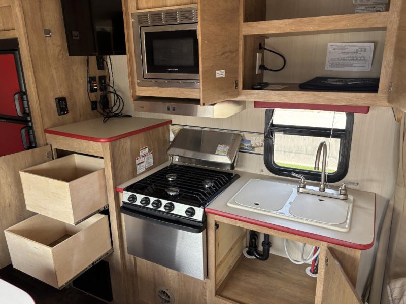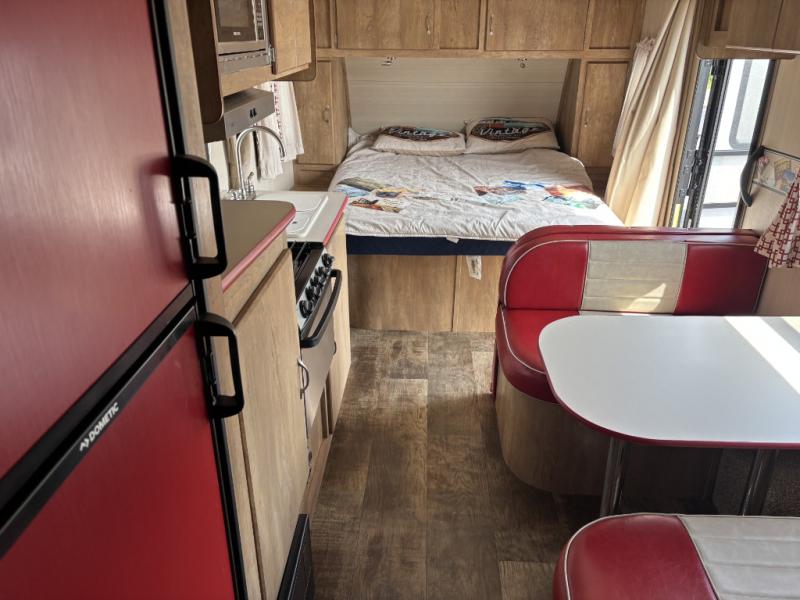 Any Vintage Cruiser model will bring you a lightweight, fun vintage vibe from the 50's when life was simpler and the pace was slower and more relaxed. These 20-26-foot models put state-of-the-art conveniences into the look of yesteryear to bring you a camping experience like no other. The Vintage Cruiser can easily be towed by your family SUV or Mini-van, and each unit features Congoleum non-stick flooring, Roanoke light Cherry cabinetry with flat panel vintage cabinet doors and drawers, LED lighting both inside and out, and a full dry bath all nestled within a welded tubular aluminum frame enclosed with a vacuum-bonded laminated fiberglass exterior including a one piece fiberglass roof.