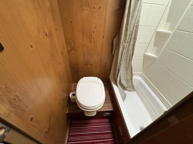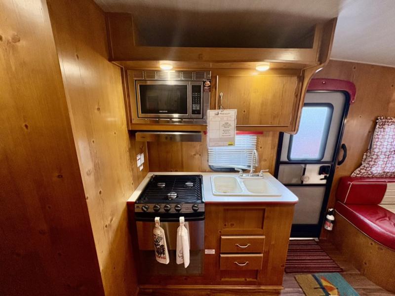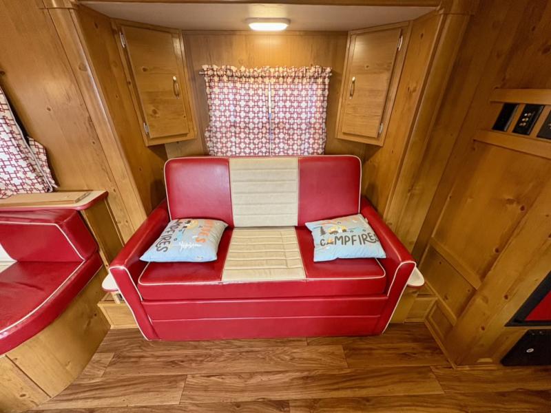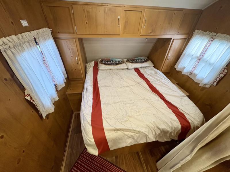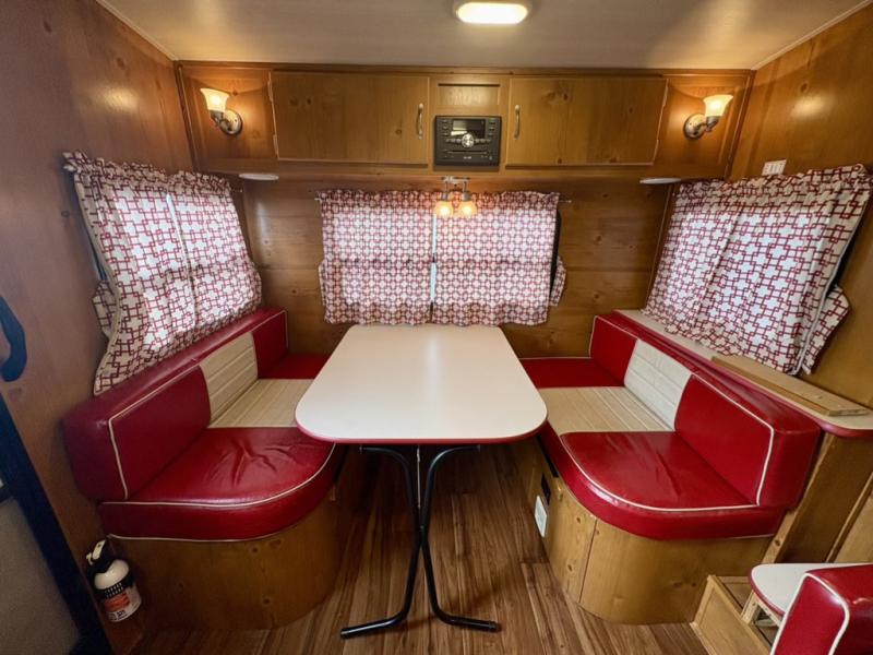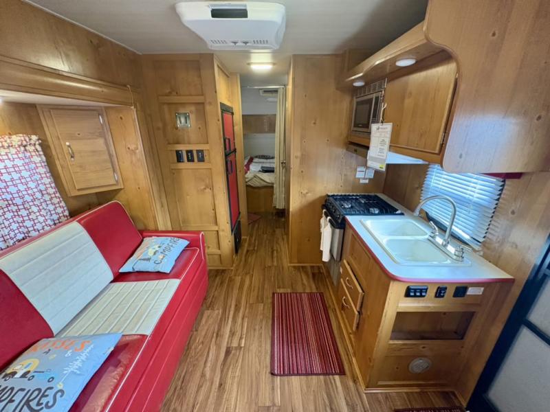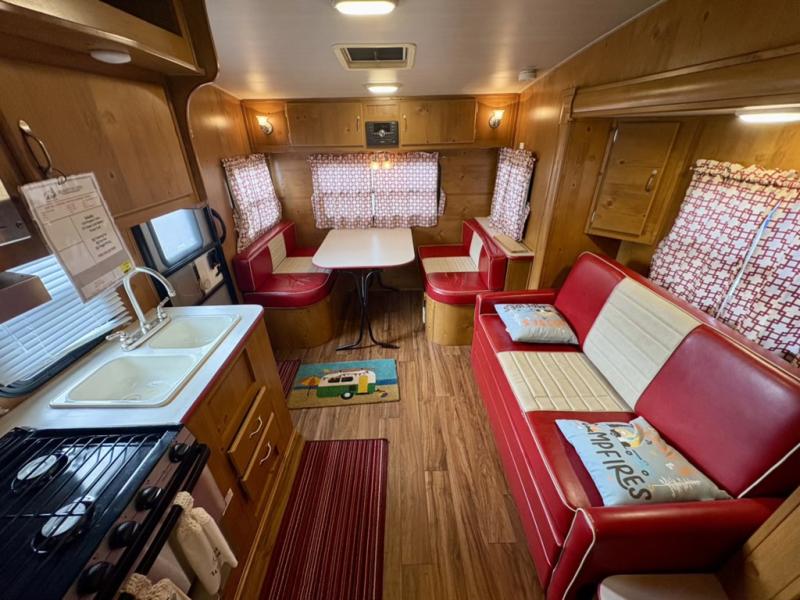 What I liked most: I like the vintage style, the red vinyl, and the knotty pine interior. I chose this model because of access to the bed on both sides, the dinette surrounded by windows, and a deep shower pan that won't leak on the floor when you bump the curtain. I also like that the toilet is not in the shower. My husband wanted 2 axels. We have the trailer 2 months and have camped 4 times. We're on a huge learning curve, but everything has worked perfectly. Our dealer, Big Country RV, Redmond, Oregon, checked everything out and gave us a walk through that was very helpful.