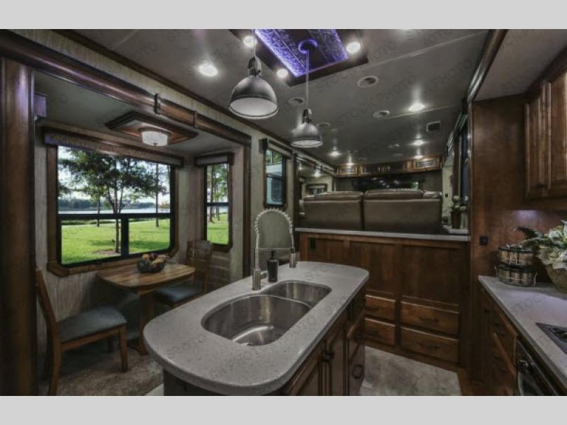 Get ready to enjoy the country with a Big Country fifth wheel by Heartland. These models have a heated and enclosed underbelly which allows you to camp in all types of weather. Also along the exterior you will find large storage areas, exterior speakers, a light at the entry step, plus a six-point hydraulic level-up auto leveling system. Inside there are stained hardwood cabinets plus a deep stainless steel kitchen sink. The living room features night shades throughout to provide you the most privacy plus there is a high-output entertainment system with DVD/Bluetooth and HDMI. There are plenty of options to choose from as well as the Elite Package and the Independence Package.