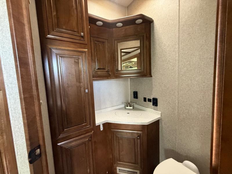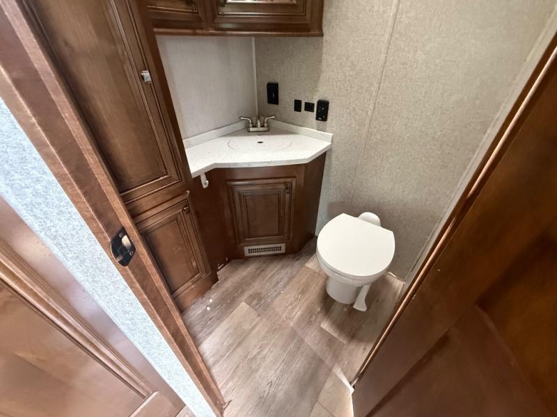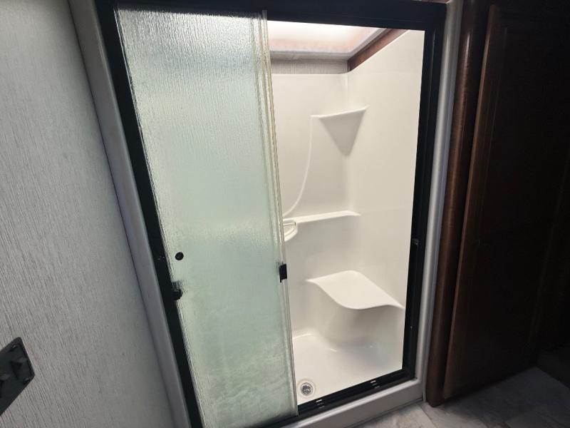 Come see just how fun camping can be when you choose to camp in this Bighorn 3870FB. The living room has some nice seating options from the sofa along the rear wall to the theater seats with cup holders within the curbside slide out. You will enjoy the extra work space that is available with the island. A handy half bath is located almost straight in from the entry door. At night head up the stairs to the bedroom where you will find a king size bed. There are sliding doors along either side of the room to give you complete privacy. The large bathroom is one many people only dream of. This room is super spacious plus there is a large front wardrobe and more!