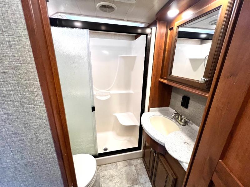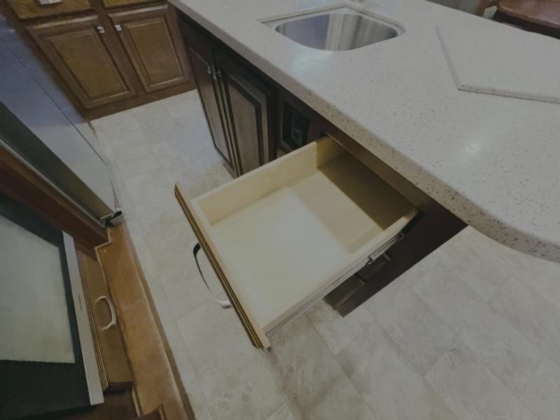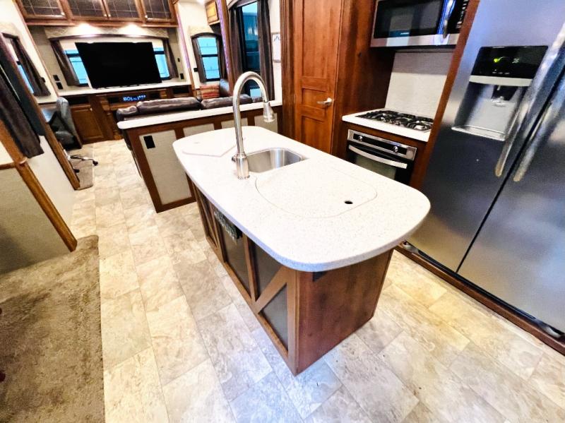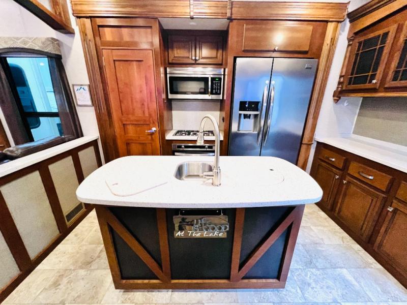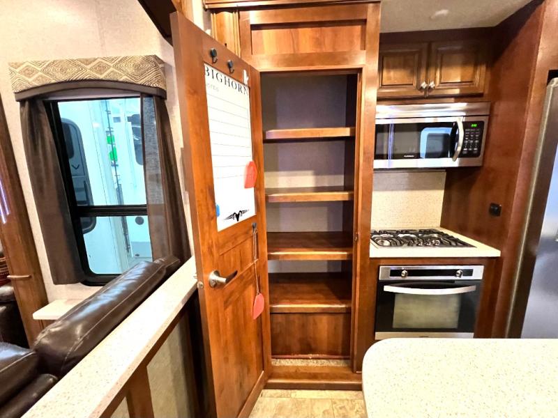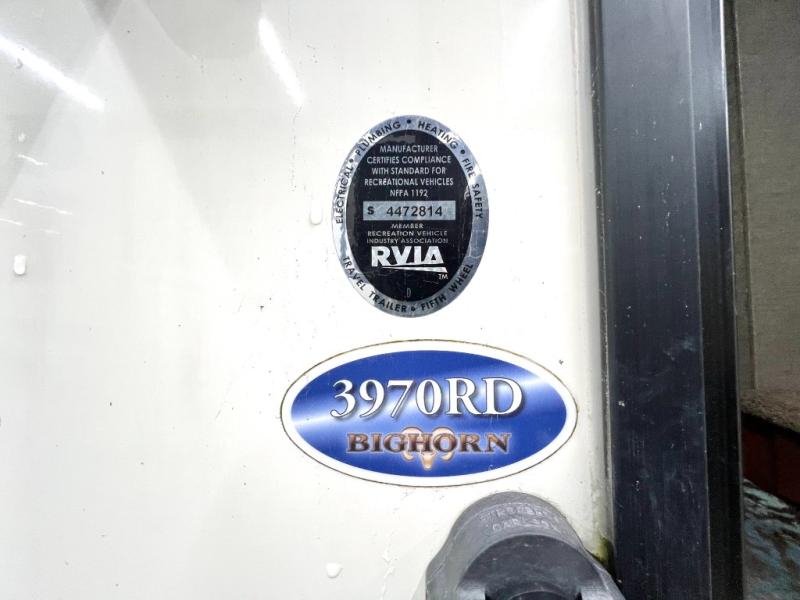 Space, space, and more space is how you would describe the inside of this Bighorn fifth wheel 3970RD. With five slide outs, a comfortable rear living area, and a spacious kitchen you will find true comfort throughout this model. Straight in from the door is the kitchen area with an island and extra counter space along the interior wall. When you are ready to relax in the evening you will find yourself drawn to the rear living area with two sofas, theater seats, and a LCD HDTV along the rear wall.