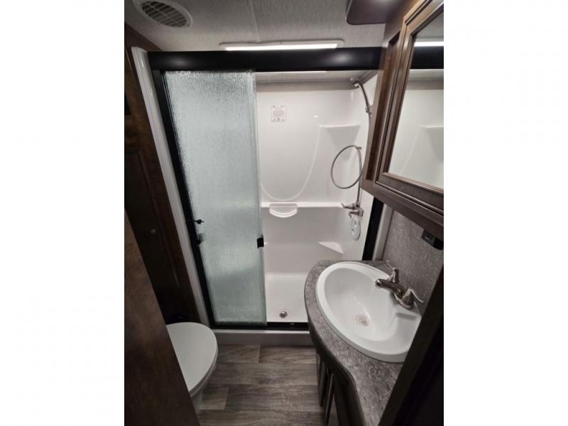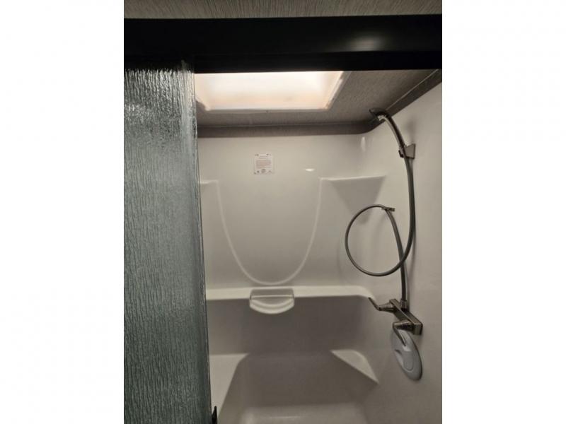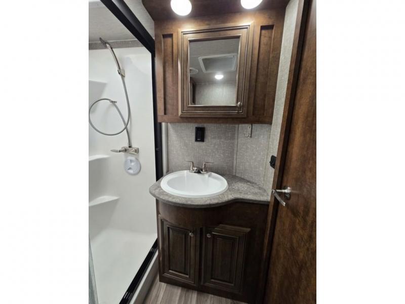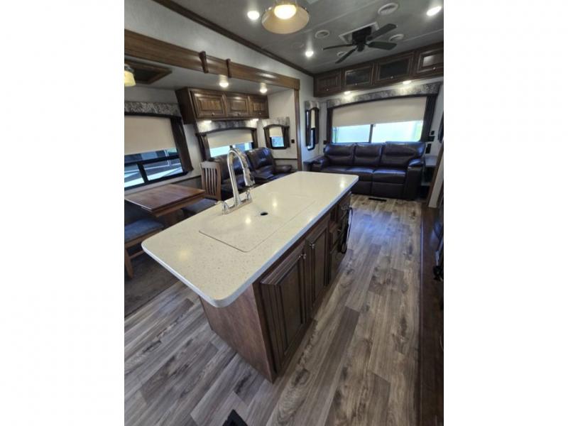 When you adventure out in a Heartland Bighorn Traveler full-profile fifth wheel, you will appreciate the 6-point hydraulic level-up as you set up camp for a weekend getaway or extended vacation. The electric awning with LED lighting offers protection from the hot sun during the day and extra light for hanging around the campsite in the evening. Inside of each Bighorn Traveler you will enjoy the class and style that the one-piece fiberglass shower and solid surface backsplash add to the interior.
