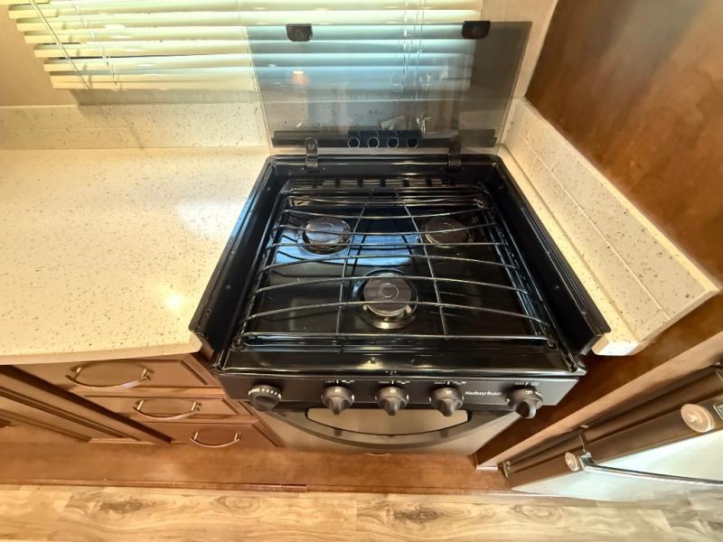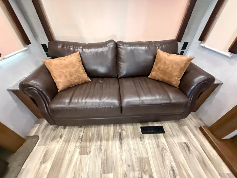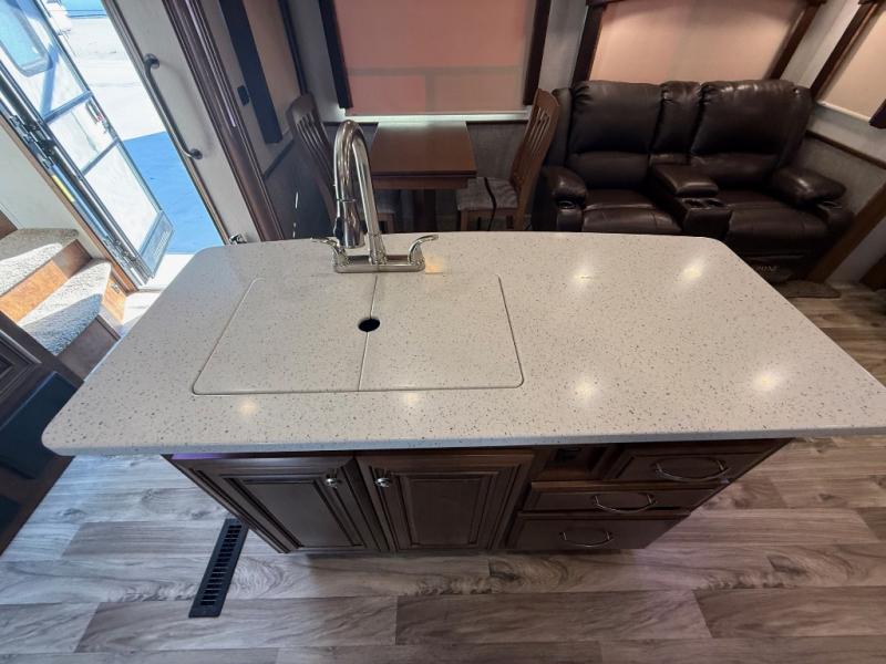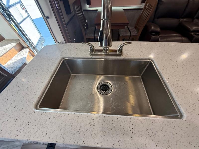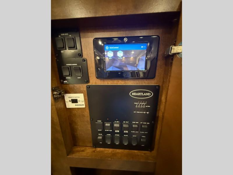 When you adventure out in a Heartland Bighorn Traveler full-profile fifth wheel, you will appreciate the 6-point hydraulic level-up as you set up camp for a weekend getaway or extended vacation. The electric awning with LED lighting offers protection from the hot sun during the day and extra light for hanging around the campsite in the evening. Inside of each Bighorn Traveler you will enjoy the class and style that the one-piece fiberglass shower and solid surface backsplash add to the interior.