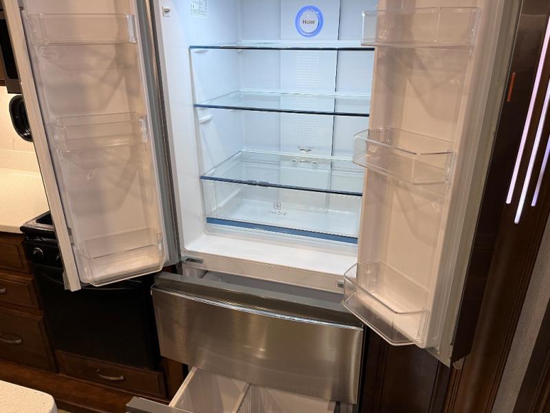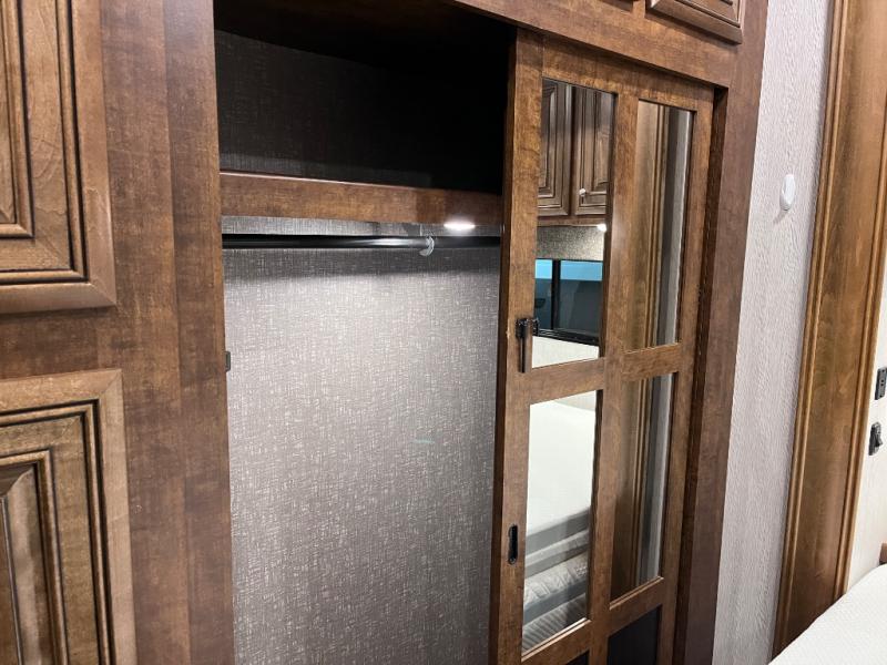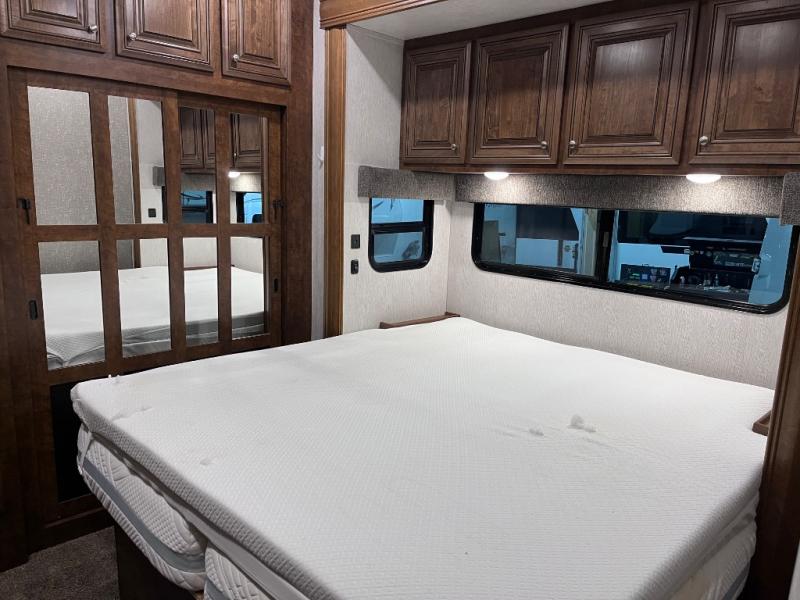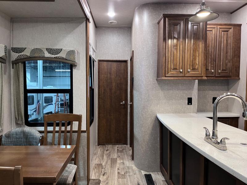 This Bighorn Traveler fifth wheel with a front living area is perfect for those who enjoy entertaining guests while away. This model offers five slides throughout the interior which adds plenty of extra space for yourself and anyone you invite along. You will love spending your evenings together with everyone in the separate living area in the front of this trailer because the residential furniture with power massage adds enough seating for everyone, and the 50" LED TV is perfect for watching the big game. At the end of the evening, you can retreat to your private bedroom in the rear of this trailer and sleep peacefully on the king-size bed that has been included.