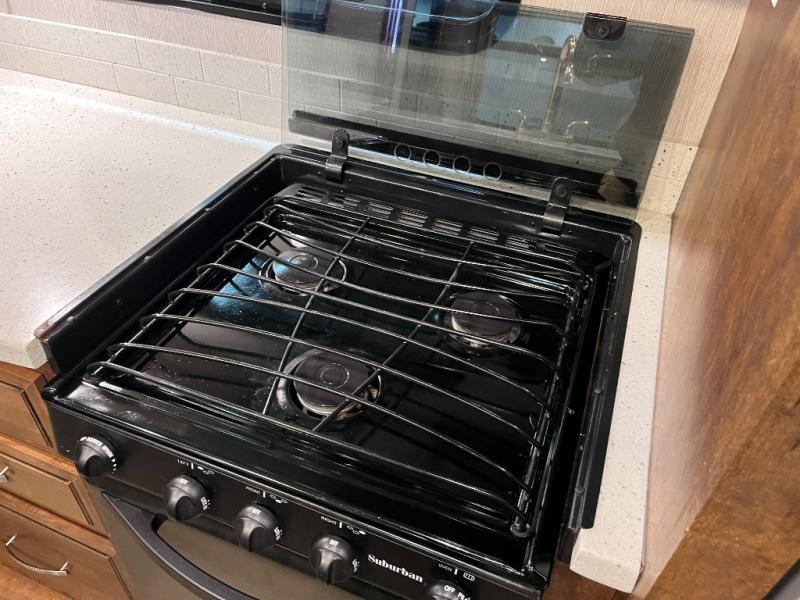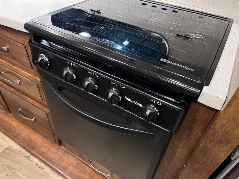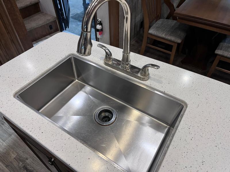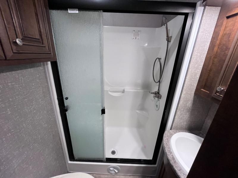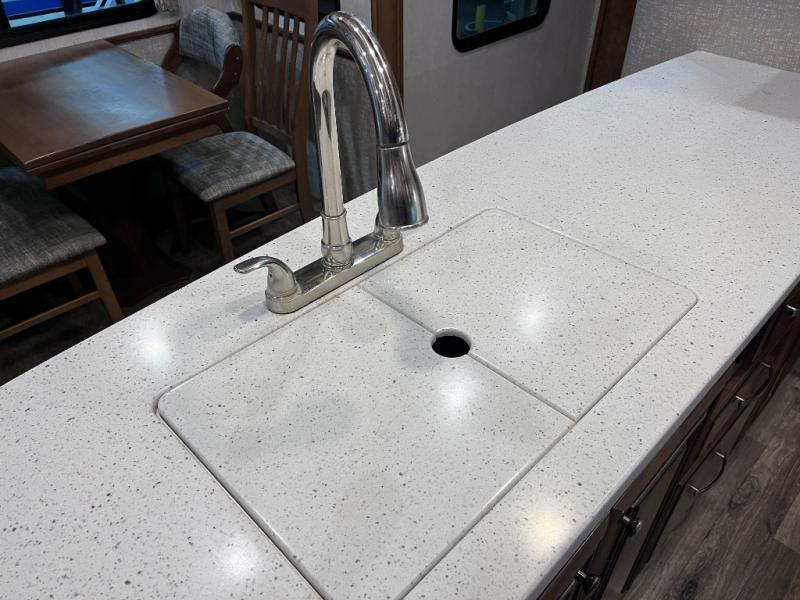 When you adventure out in a Heartland Bighorn Traveler full-profile fifth wheel, you will appreciate the 6-point hydraulic level-up as you set up camp for a weekend getaway or extended vacation. The electric awning with LED lighting offers protection from the hot sun during the day and extra light for hanging around the campsite in the evening. Inside of each Bighorn Traveler you will enjoy the class and style that the one-piece fiberglass shower and solid surface backsplash add to the interior.