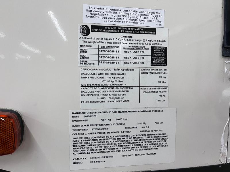 Used 2018 Heartland Bighorn Traveler 39FL Fifth Wheel