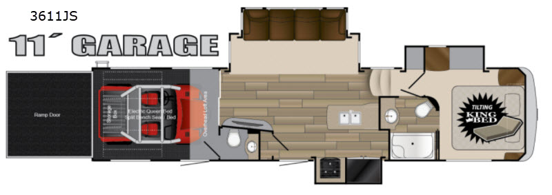 Are you ready for some time away from home doing what you enjoy best…a little camping and a little off-roading? Well, come load up this triple slide out Cyclone 3611JS toy hauler fifth wheel by Heartland RV to begin your next vacation! You will love all of the room in the 11’ garage for any four wheelers or dirt bikes. After you are done riding then easily clean up in the half bathroom off of the garage. The combined kitchen and living area feature so much space with a jumbo slide out along the roadside. Come relax and kick back at the sofa while watching TV on the 55” LCD HDTV. When you are ready to turn in for the night there are plenty of spots to do so such as the tilting king bed in the front bedroom, the loft, or in the garage there is an electric queen bed with a split bench seat/bed below and more!