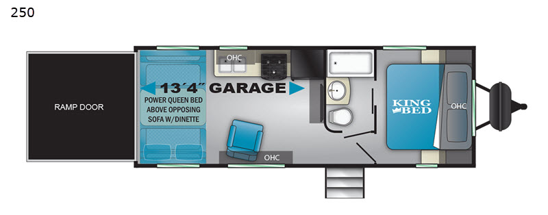 You won't be able to contain your excitement when you take this Fuel toy hauler with you on your next adventure! From its queen-size bed in the private master suite to its electric bunk, this unit gives you all the space you need to sleep six people comfortably each night of your vacation so that you can wake up refreshed and ready to hit the trails. You will also enjoy having vaulted ceilings so that you don't have to worry about hitting your head as you move throughout the interior, and the ceiling fan will do a wonderful job of circulating air so that you remain cool during the warmer months.