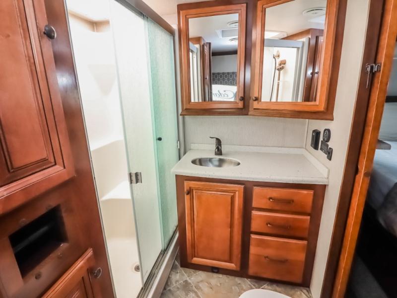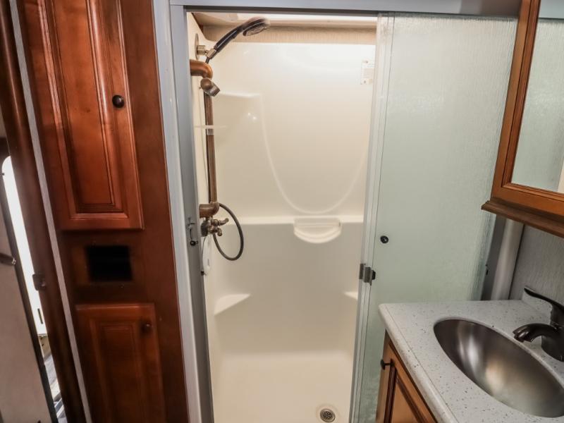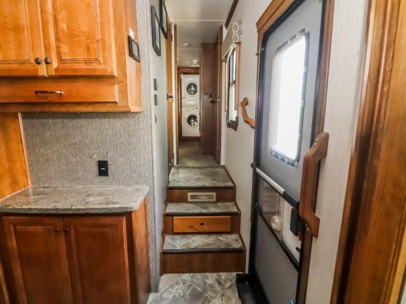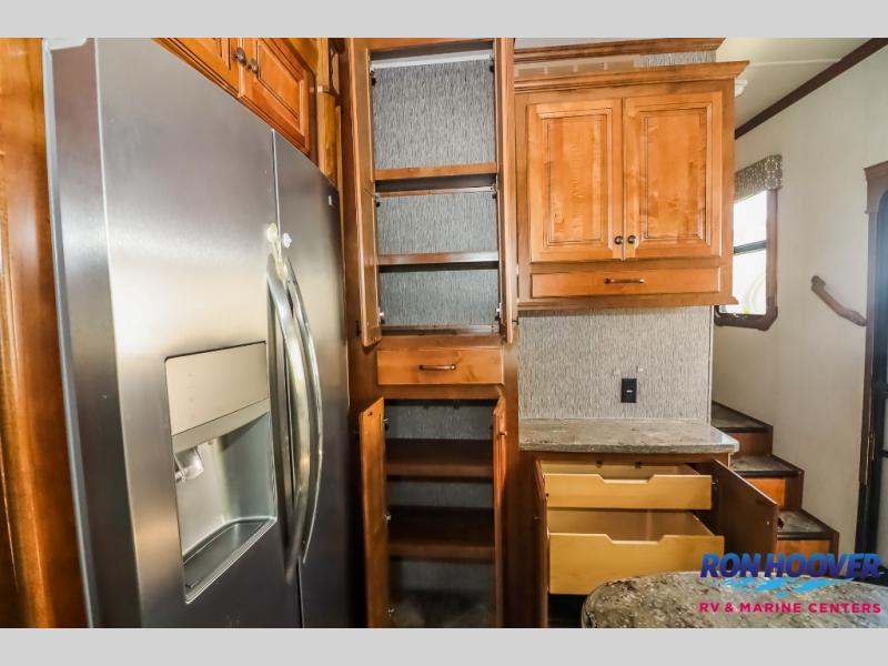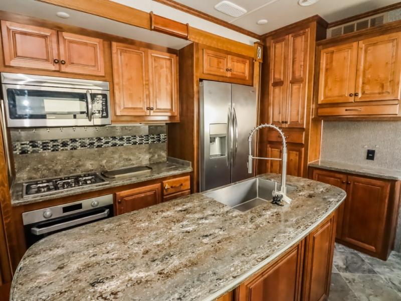 What I liked most: We have been looking at various luxury fifth wheels, when we walked into this unit it really had the Wow factor. We really liked wood working and the quality of the overall interior. The unit has plenty of storage space in the kitchen and bedroom areas. We really liked the way the living room was constructed so as to give you the feel you were in a separate room from the kitchen. We also liked the way the living room was laid out so you were in front of the TV instead of to the side. I was impressed with the exterior as much as the interior. I liked the suspension, full body paint and the way the underside of the unit was fabricated.