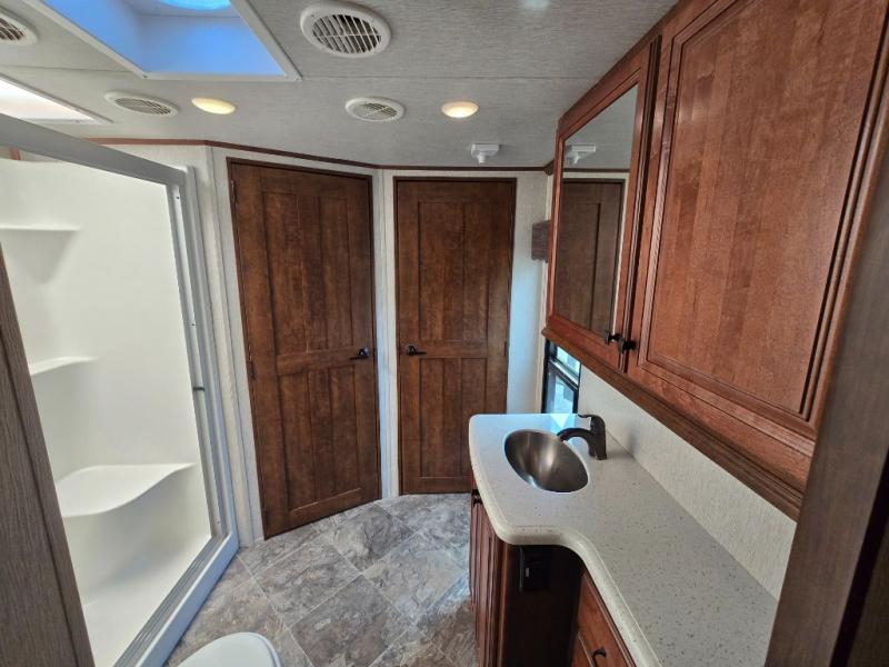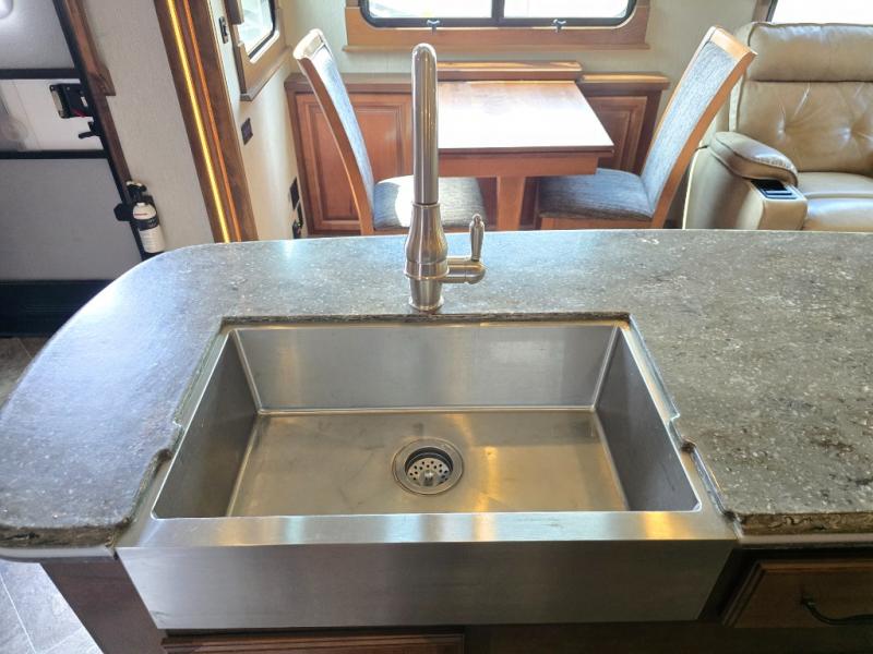 Come experience true luxury when you camp with the Landmark 365 by Heartland RV. These fifth wheels boast of comfort and convenience throughout. The sofa tables offer USB ports, so you can easily charge your electronic devices. In the living room, choose the optional Away Package and enjoy power theater seating with heat and massage - now that's luxury! The bedrooms offer adjustable reading lights, a power tilt bed, plus a TV. A few key features that you would find at home include a backlit tile backsplash, a residential refrigerator, and a farmhouse stainless single basin kitchen sink with a cutting board. There are also beautiful Maple hardwood cabinets throughout plus so much more!