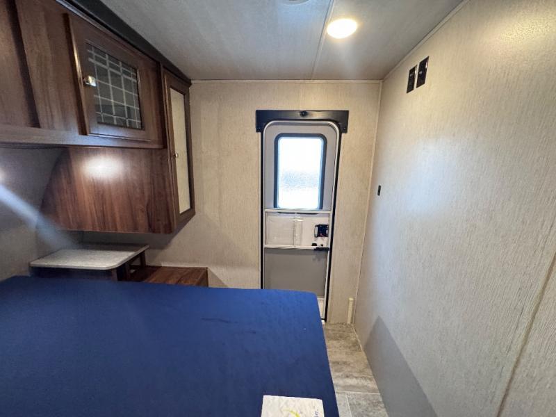 After just one trip, you will wish that you had found this Mallard Ultra Lite travel trailer sooner! This trailer's dual entry makes it desirable for those who like to take early morning fishing trips or late-night excursions because one of the doors leads directly into the front private bedroom which means that you can come and go quietly without disturbing your sleeping guests on the living room sofa and booth dinette. Since this trailer has a single slide, it allows you to have plenty of interior living space, and it keeps the rear kitchen from getting congested while you are frying burgers on the 3-burner range top.