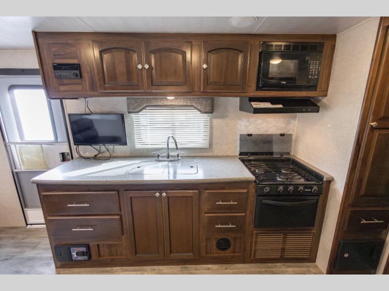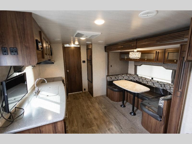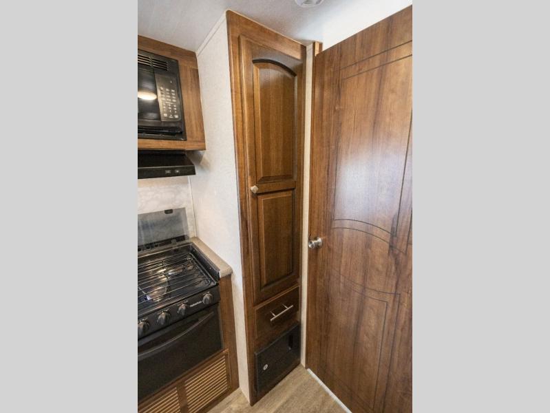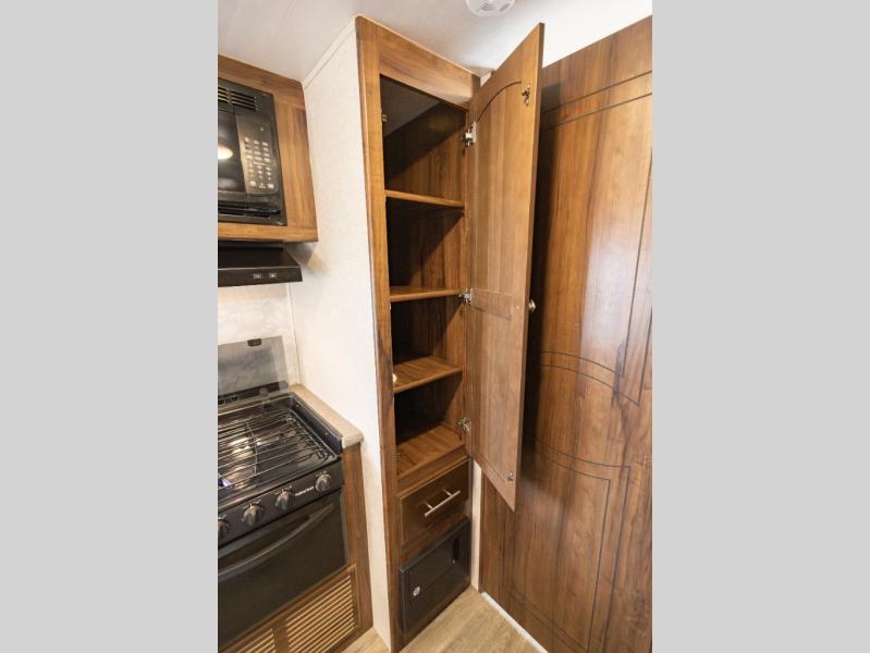 For a lightweight travel trailer that is not lacking on features you will want a North Trail by Heartland. Along the exterior there is a heated and enclosed underbelly which allows you to camp in all types of weather! You will also find a one piece rubber roof plus nitro filled radial tires. Inside enjoy the extra space with the curvilinear roof, LED lights, and the Beauflor flooring. The NT Kitchen Package includes upgraded brushed nickel hardware, a large kitchen window, a pull out spray faucet and more. The Lightweight Strength Package has block foam brick insulation, HD leaf spring suspension, and a Weather Guard thermal protection, plus more!