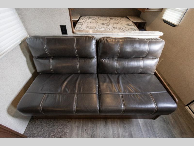 What I'd improve: I took out the couch,( easy 12 screws) then removed partial knee wall also easy save trim pieces. Replaced that space with 2 small swivel rocker much more comfortable and easy to navigate around the bed.8 years ago | William M. from Riverview, FL