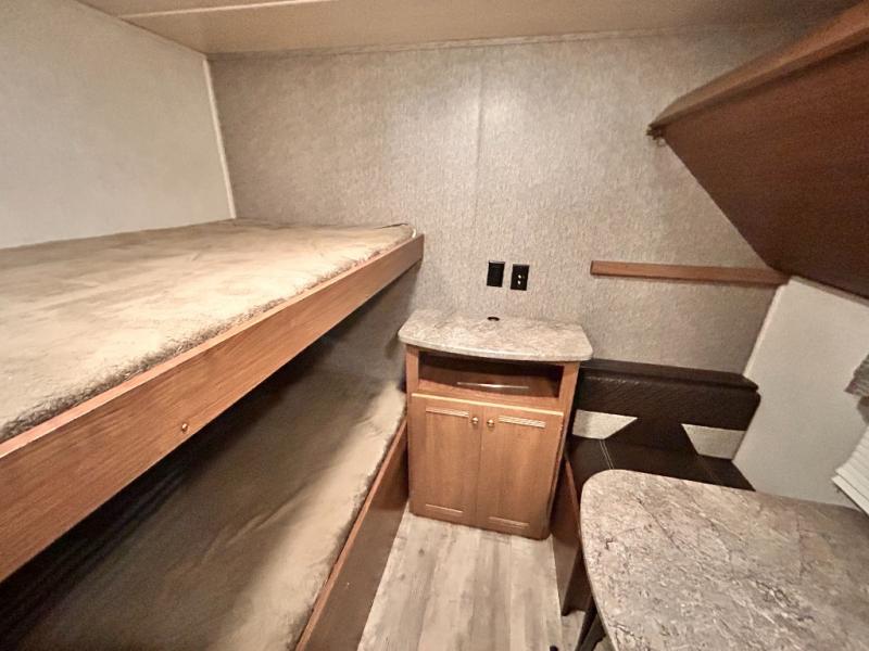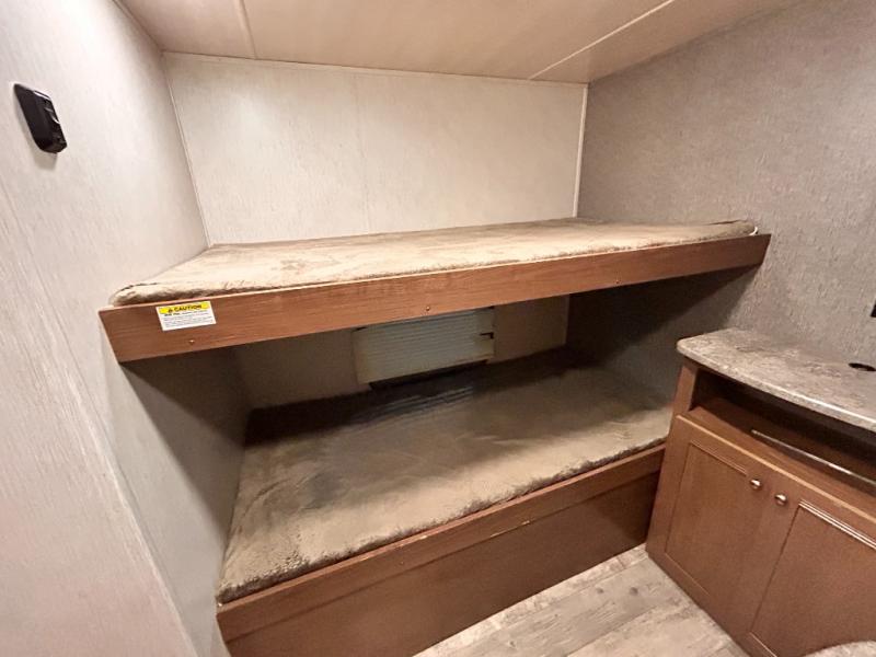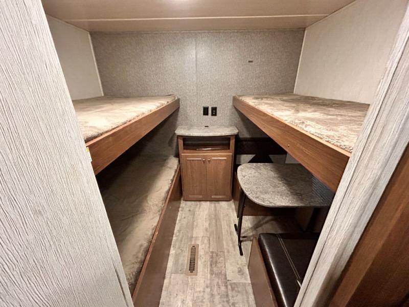 A favorite spot for your kids will be the rear bunk house. Here you will find two sets of bunk beds. In place of the set of bunks along the road side you can add an optional kiddie dinette with a bunk above, and more!