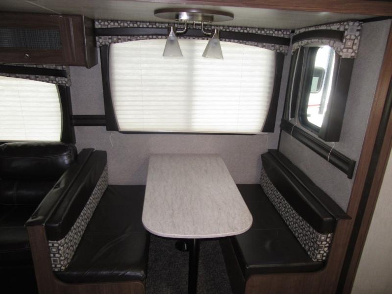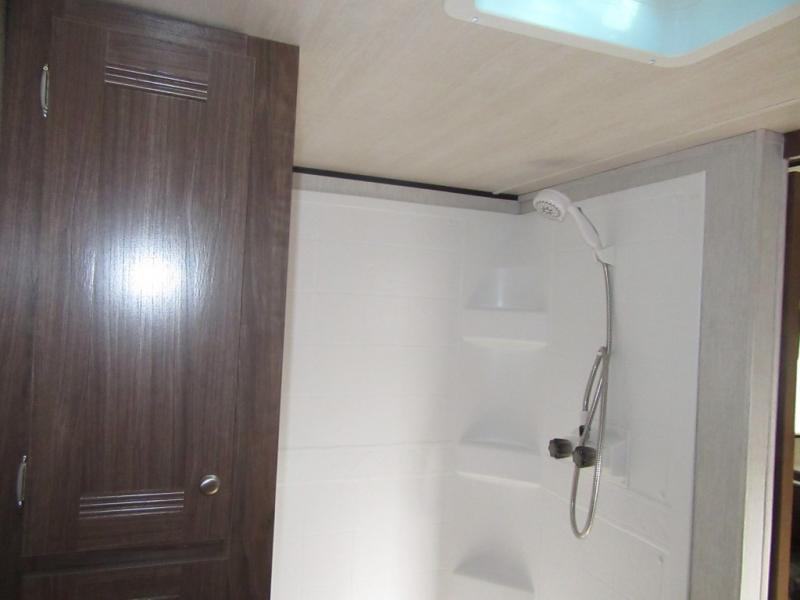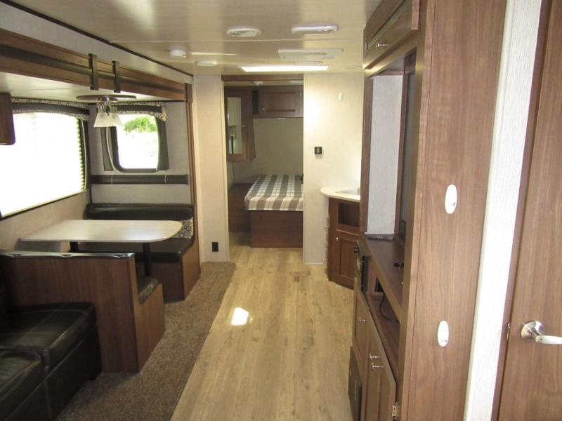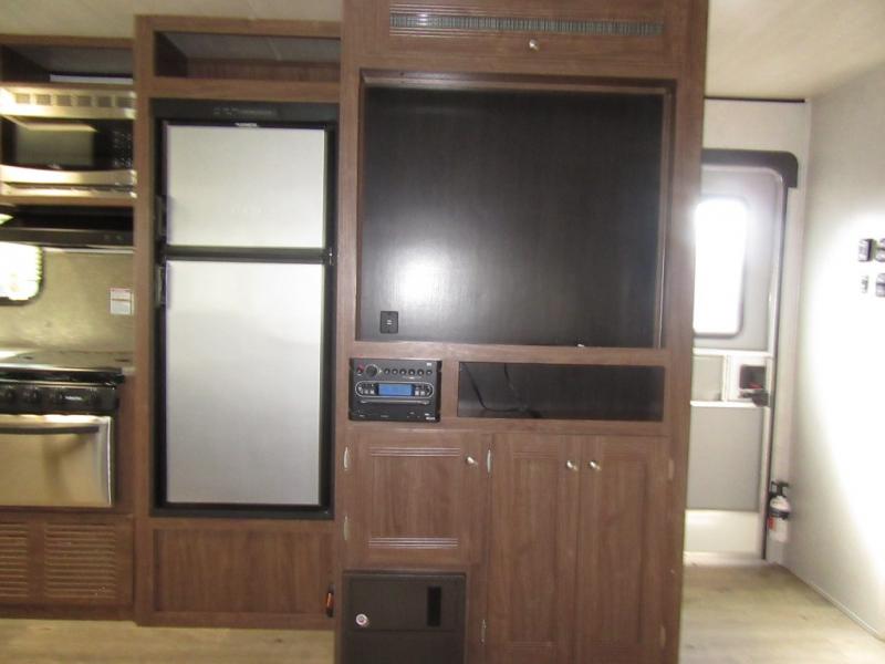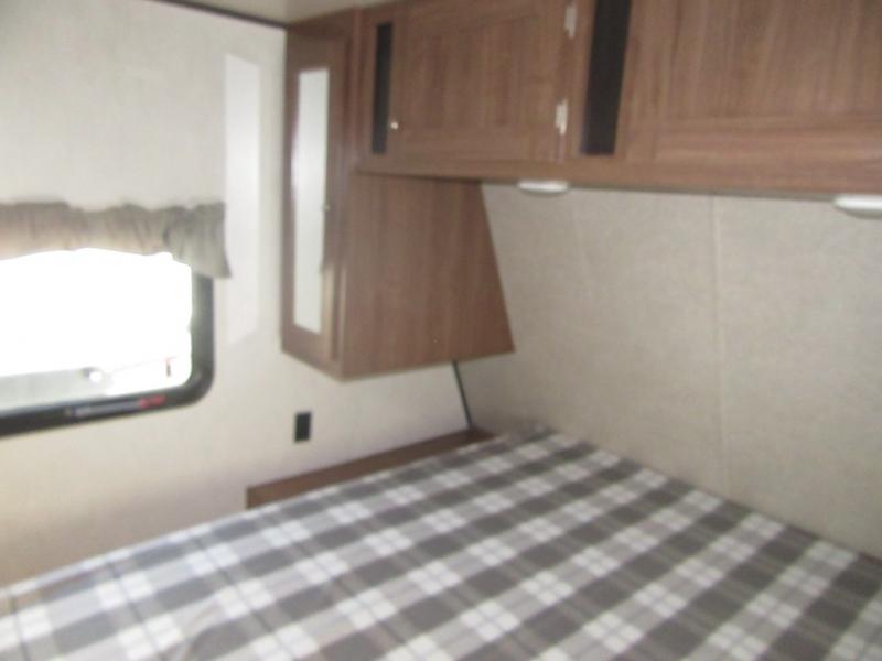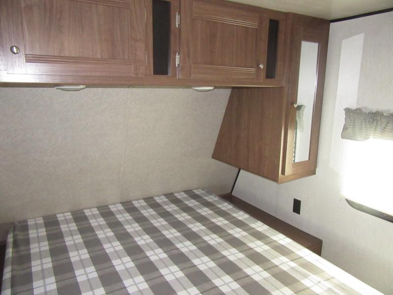 From the queen-size bed in the private bedroom to the rear bathroom, this Prowler travel trailer provides many home-like amenities you will love. As you prepare dinner for the family, you will find the walk-in pantry very handy for storing all of your favorite snacks and spices, and the single slide gives the main living area plenty of room for you to cook.