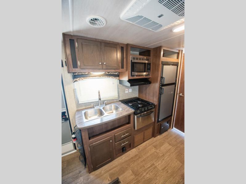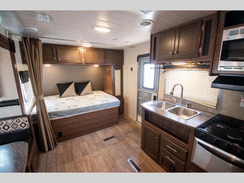 Your next weekend get-a-way can include a little bit of trail riding, and a whole lot of camping when you choose the 281P TH Prowler toy hauler travel trailer by Heartland RV. This model features plenty of cargo space for your off-road toys, plus a single slide out for added floor space.