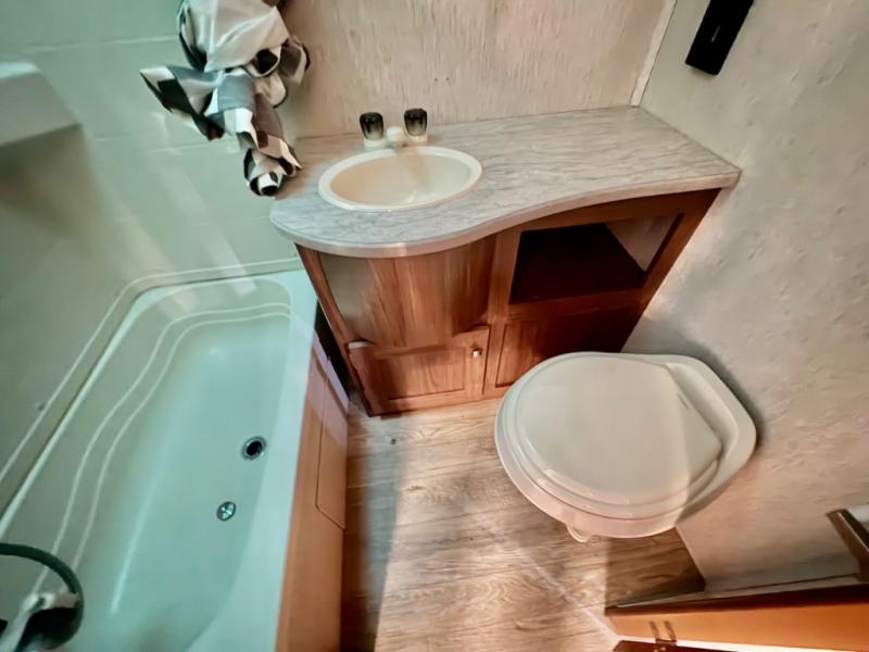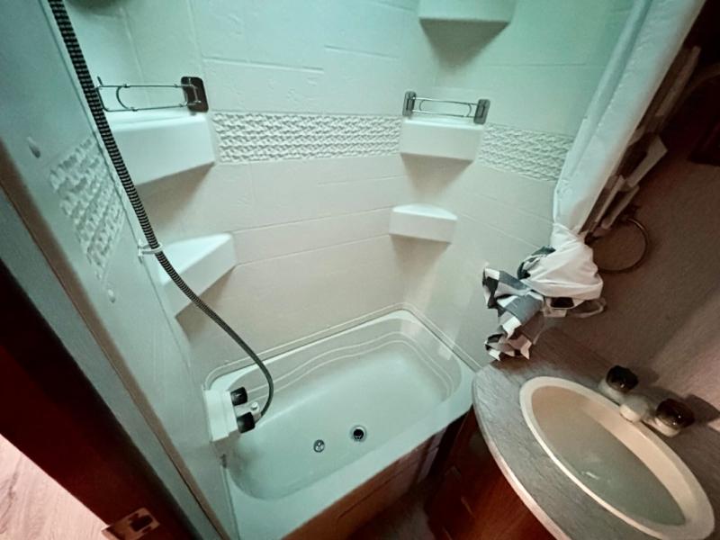 Full Bathroom – Enjoy the convenience of a residential-style bathroom with a roomy shower, toilet, sink, and storage for towels and toiletries.