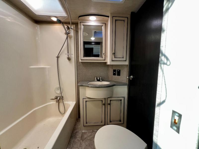 When you are ready for your next vacation to include time outdoors riding the trails and then coming back to the comfort of your home away from home, you will want this double slide out Road Warrior 427 toy hauler! The 12.5' garage has enough room for a few dirt bikes or even an ATV. With the half bathroom in the garage you can easily clean up before heading inside. After dinner come enjoy sitting outside at the patio while watching a little TV at the optional exterior 40" TV. Your kids can have their own space up in the loft, and mom and dad can enjoy the spacious master bedroom with a king bed!