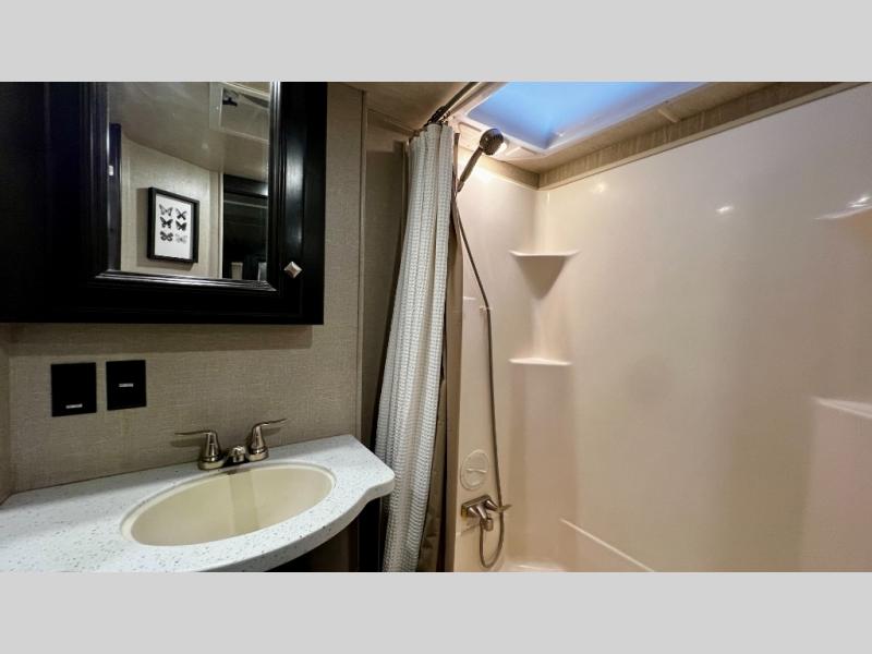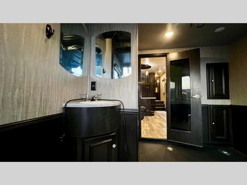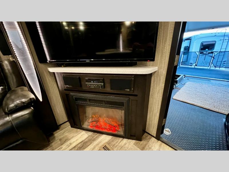 In this Heartland Road Warrior you can have it all, a place for your toys and gear, plus space that provides the comforts and conveniences of home! This toy hauler fifth wheel model 429 features triple slide outs and one and a half bathrooms with the half bathroom in the garage so you can easily clean up after playing outdoors. The 13' garage has plenty of room for any off-road toys that you want to bring along, and after your gear is unloaded then there is an electric bed which can be used for additional sleeping space as well as the split bench/optional bed. In the combined kitchen and living area you can relax while watching TV or enjoy a fire in the fireplace. The loft is a nice hang out place for your kids, and at night mom and dad can retreat to the private front bedroom.