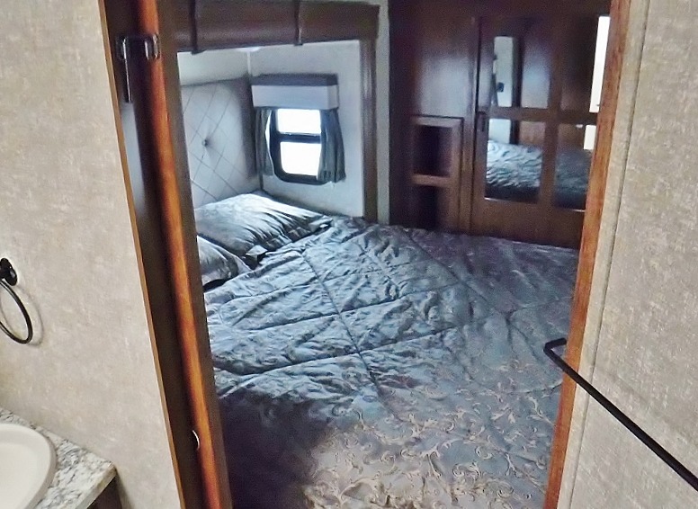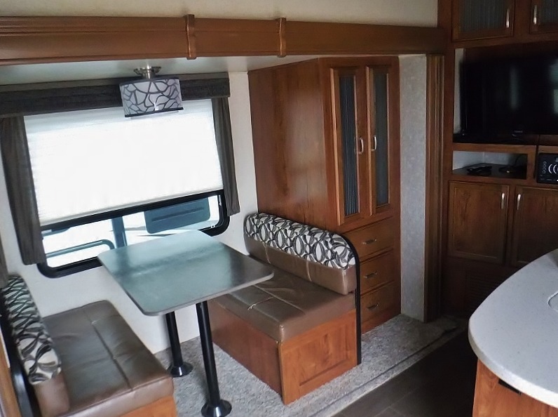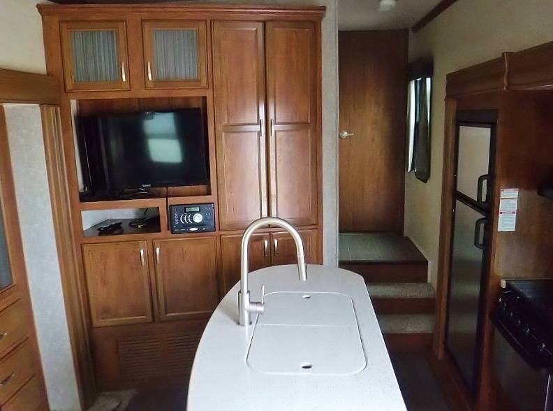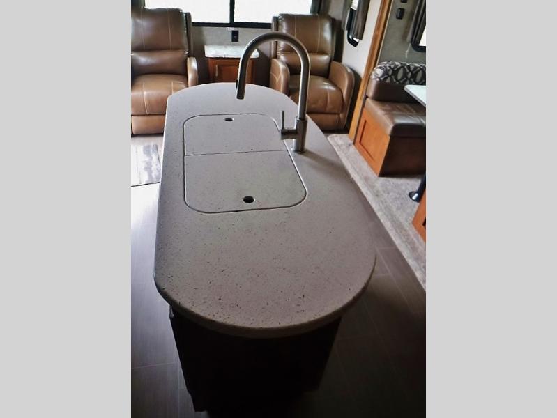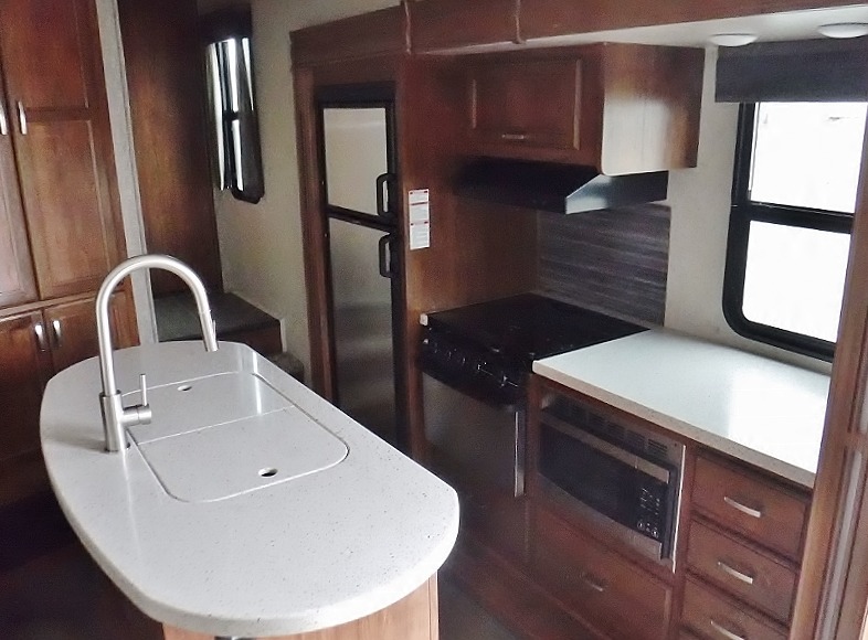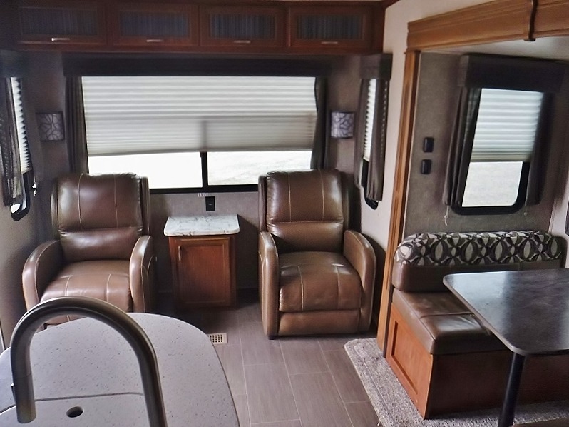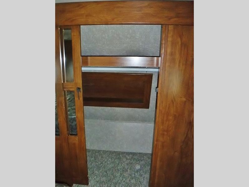 This Sundance mid-profile fifth wheel is a great couples coach which provides a roomy interior that you are sure to enjoy. The triple slides are all flush mounted slides so there is no bump on the floor to trip over when your slides are fully extended. You will enjoy a complete kitchen including a handy island where your sink is located, and stainless steel appliances as well. There is plenty of storage throughout with a large closet in the master bedroom, a pantry, plus overhead cabinets in the kitchen area as well as across the entire rear of the unit making it easy to keep things tucked away when not in use.