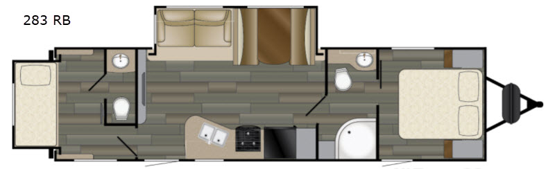 You will enjoy the convenience of the bath and a half that is featured on this Sundance Ultra Lite 283 RB travel trailer. Your kids can easily access the half bathroom from the rear bunk house. The double slide outs help to open up the floor space. There is one slide out in the bunk house and the other slide out is in the main living area along the roadside. The front private bedroom can be accessed from either the walk-through bathroom or the front entry door.