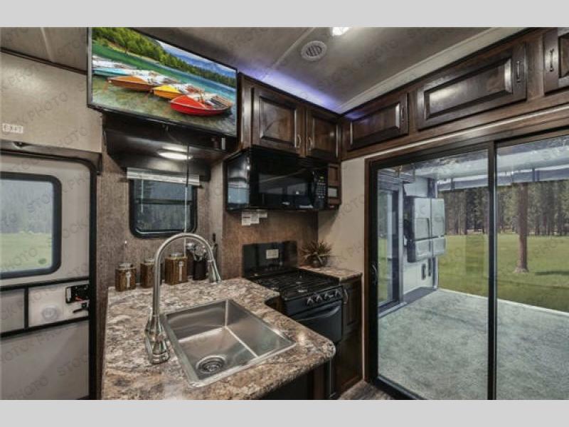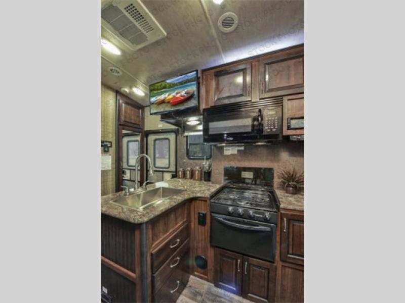 Get ready to have plenty of fun that will last all weekend long with any of the Heartland Torque toy hauler travel trailers. You can easily fuel up your toys at the outside fuel station. In the garage, you will find that the rubberized floor is fuel and oil resistant. In the kitchen, there are solid surface countertops and a high rise kitchen pull-out faucet. You can relax at the residential furniture with built-in recliners, and throughout each model, there is high end Ashlyn cabinetry as well as high-end carpet and cold/crack resistant flooring.