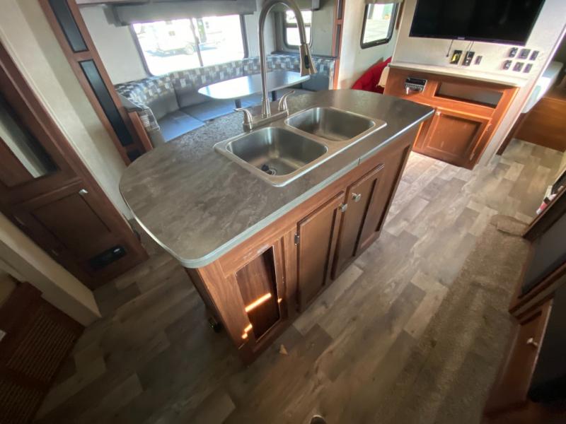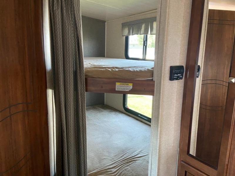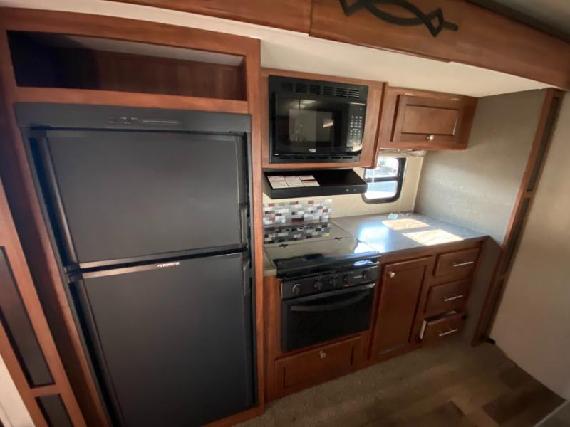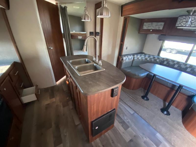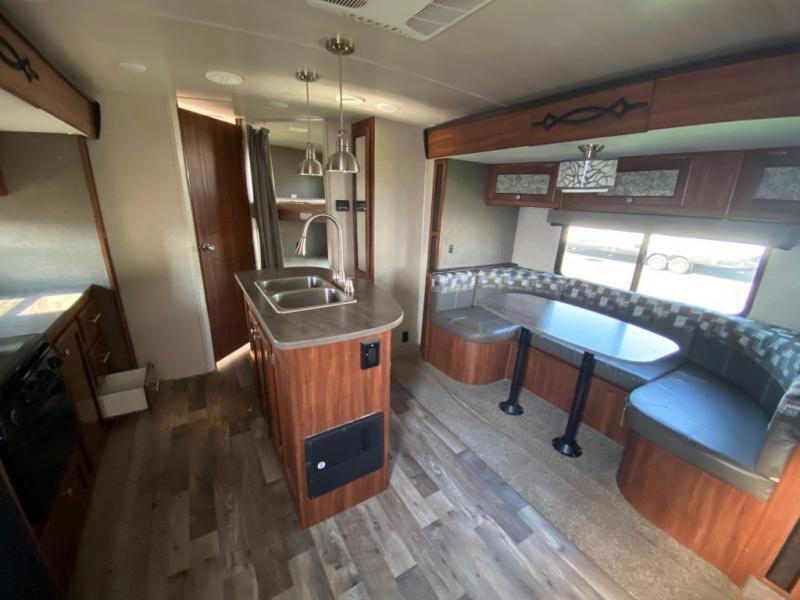 Enjoy spending time away from home in this Wilderness model 2375BH by Heartland RV. The kids will enjoy a set of queen size bunk beds in the rear and at night you will enjoy your queen bed in in the front, away from their giggling voices. The dual entry doors allows for a smooth flow of traffic in and out of the trailer. There is a U-shaped dinette that you can enjoy your meals at or even convert it into an extra sleeping space. The kitchen island not only gives you extra counter space to prep your meals, but also extra storage space for your pots and pans.