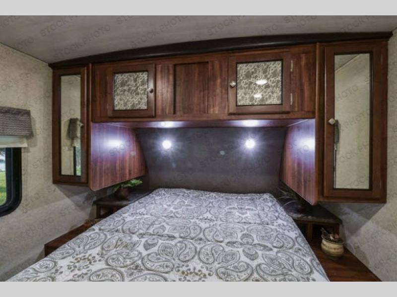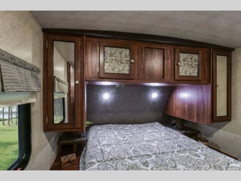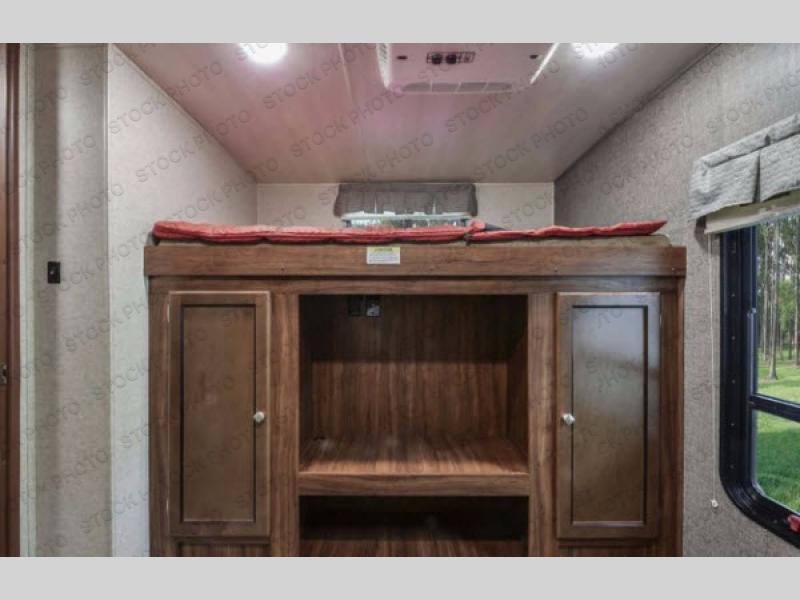 Just before entering the rear private bunkhouse notice a storage pantry to the left of the slide out booth dinette. Here you can store your dry and canned goods, or whatever you need to tuck away while not being used.