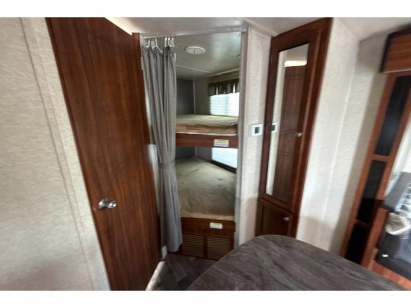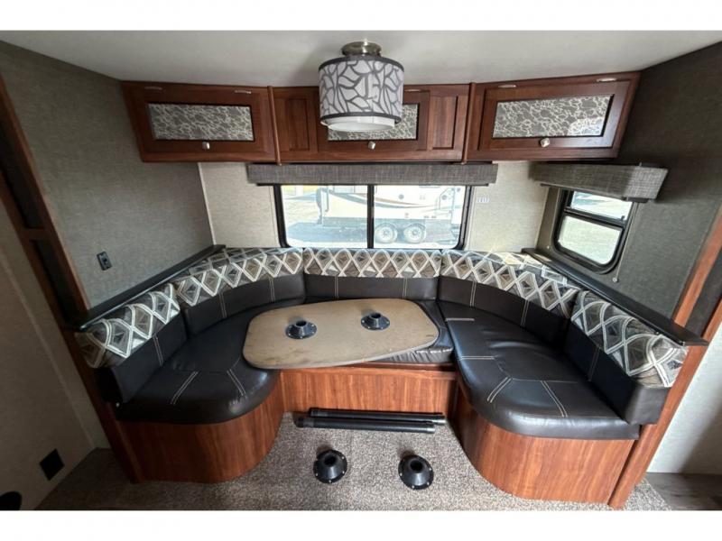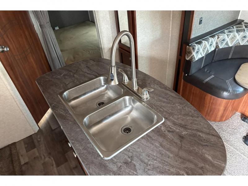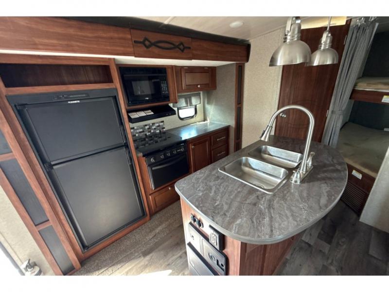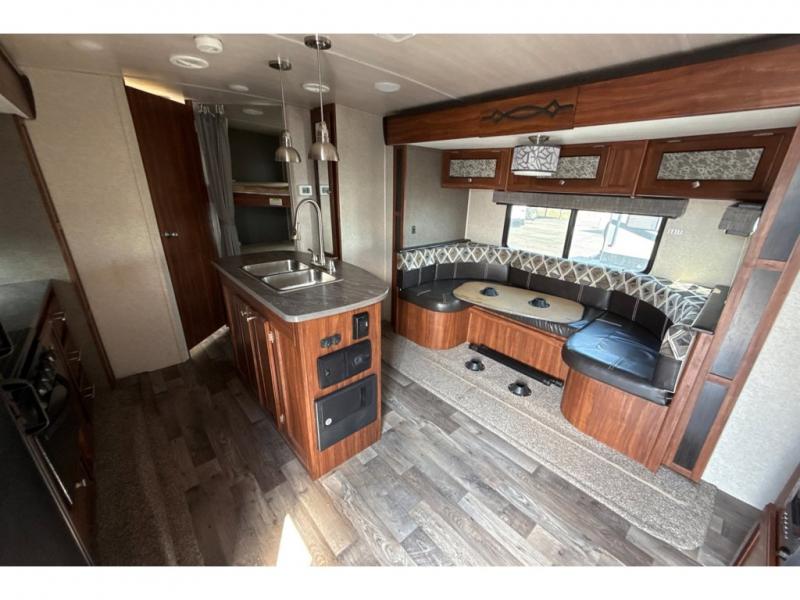 Enjoy spending time away from home in this Wilderness model 2375BH by Heartland RV. The kids will enjoy a set of queen size bunk beds in the rear and at night you will enjoy your queen bed in in the front, away from their giggling voices. The dual entry doors allows for a smooth flow of traffic in and out of the trailer. There is a U-shaped dinette that you can enjoy your meals at or even convert it into an extra sleeping space. The kitchen island not only gives you extra counter space to prep your meals, but also extra storage space for your pots and pans.