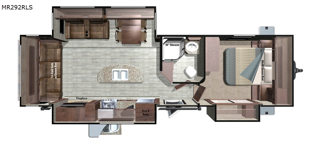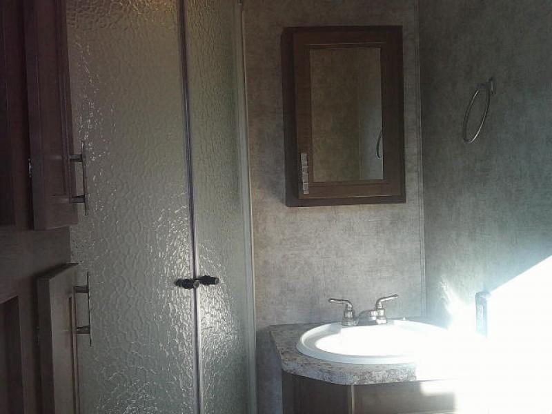 Step inside model MR292RLS and notice the convenient location of the complete bath directly across the hall. Inside there is an radius shower, toilet, sink, and a linen cabinet.