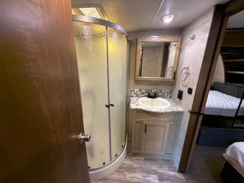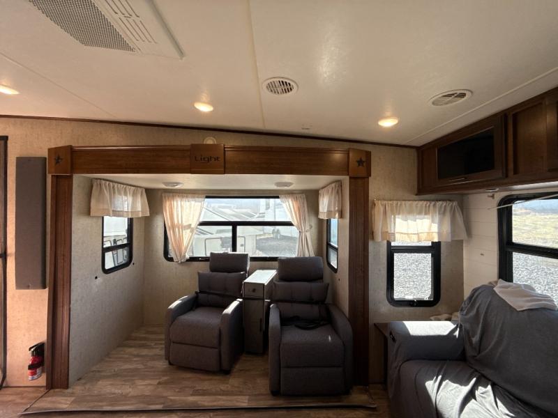 You will love all the conveniences that this Highland Ridge Open Range Light model LF291RLS fifth wheel has to offer you and your family. You can relax inside on the theater seats and sofa while watching movies and shows on the 39" LED TV, or play games with friends at the booth dinette. A kitchen island provides additional counter space for preparing and serving meals, while the sink provides easy clean up. You will be amazed at all the storage throughout each room for all your camping items. The dual entry bath allows access from the hallway or the front bedroom. The front bedroom offers you a private space to get away or sleep in comfort, plus there are many more conveniences inside and outside!