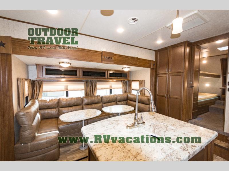 You will enjoy camping with family and friends in this Open Range Light fifth wheel model LF295FBH by Highland Ridge RV. This unit offers a front bunkhouse, a rear bedroom, and triple slides.