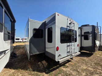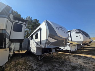 Triple slides and a rear living layout are featured in this Open Range fifth wheel model OF337RLS.