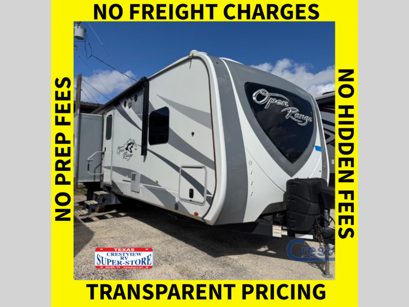 You will love the double-welded aluminum frame with smooth fiberglass exterior which keeps the unit lightweight for ease of towing. The double batten insulation and fully enclosed underbelly in any Open Range model will extend your camping season without you having to worry about it being too hot or too cold. As you are camped you will enjoy name brand appliances, Corian solid surface countertops, and heavy duty full extension drawer guides that are rated for 100 lbs. each. Plus, front and rear stabilizer jacks and LCI Equa-Flex suspension create a smooth hauling experience on any camping excursion. Come choose your new Open Range model today!