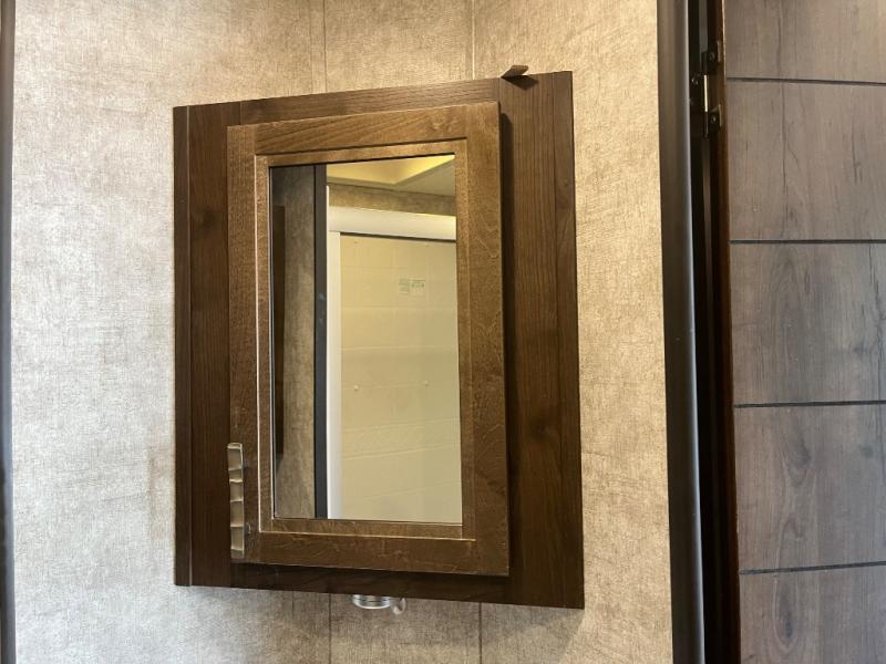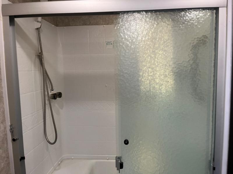As you enter this model, to your right you will find a side aisle bathroom which features a toilet, shower with seat, linen storaget, and a sink with a medicine cabinet. A convenient sliding door leads into the front bedroom, or you can enter from the hallway.