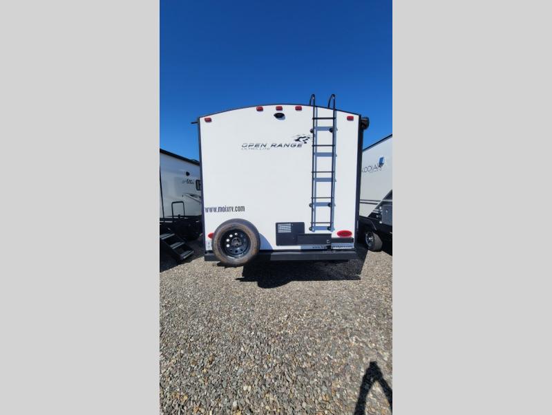 If you are looking for an entry along the curbside into the main living area and an entrance into the rear bathroom from the roadside, then take a look at this Open Range Ultra Lite travel trailer UT2802BH. You will find these features as well as many more such as a set of double size bunk beds and a large slide out.